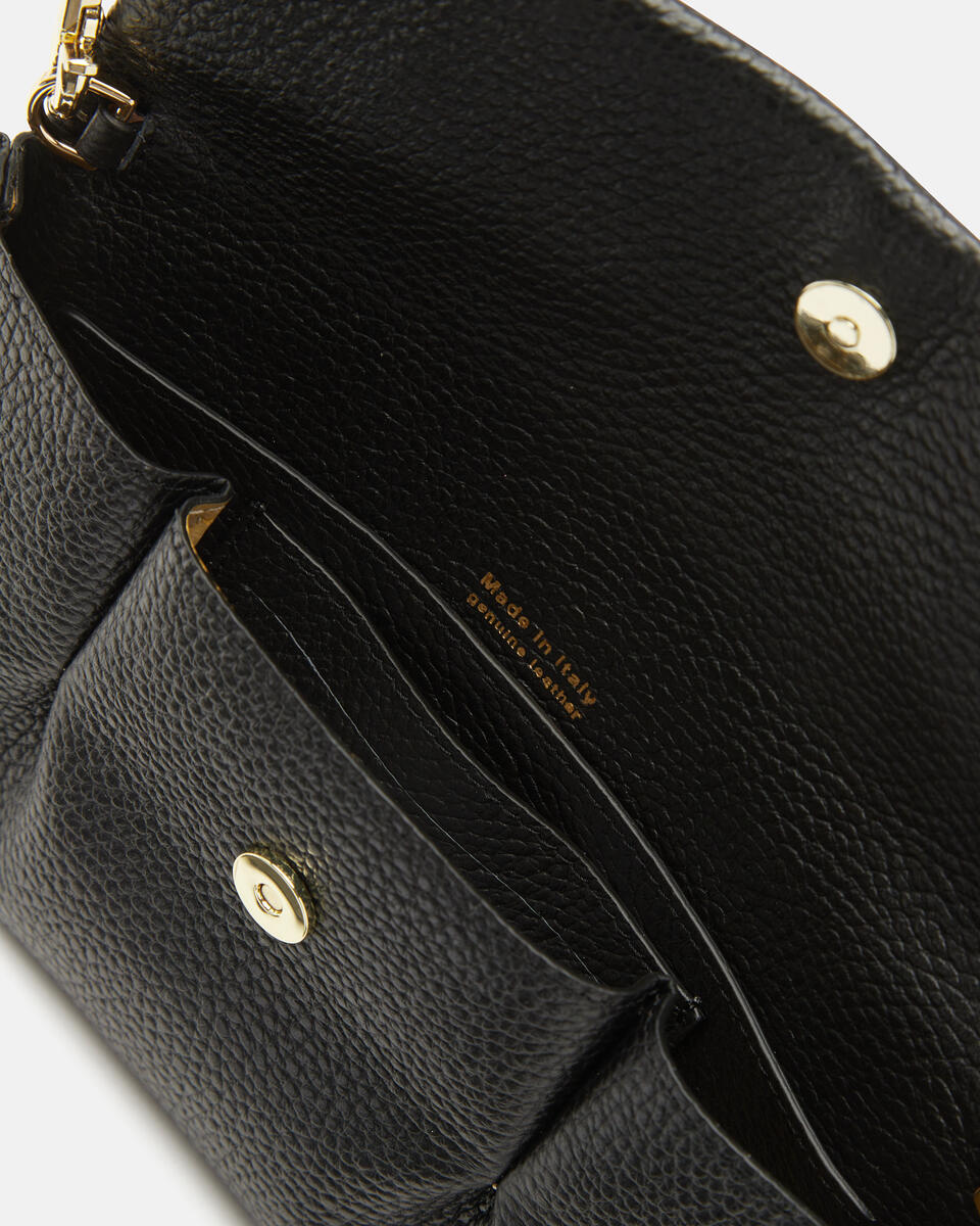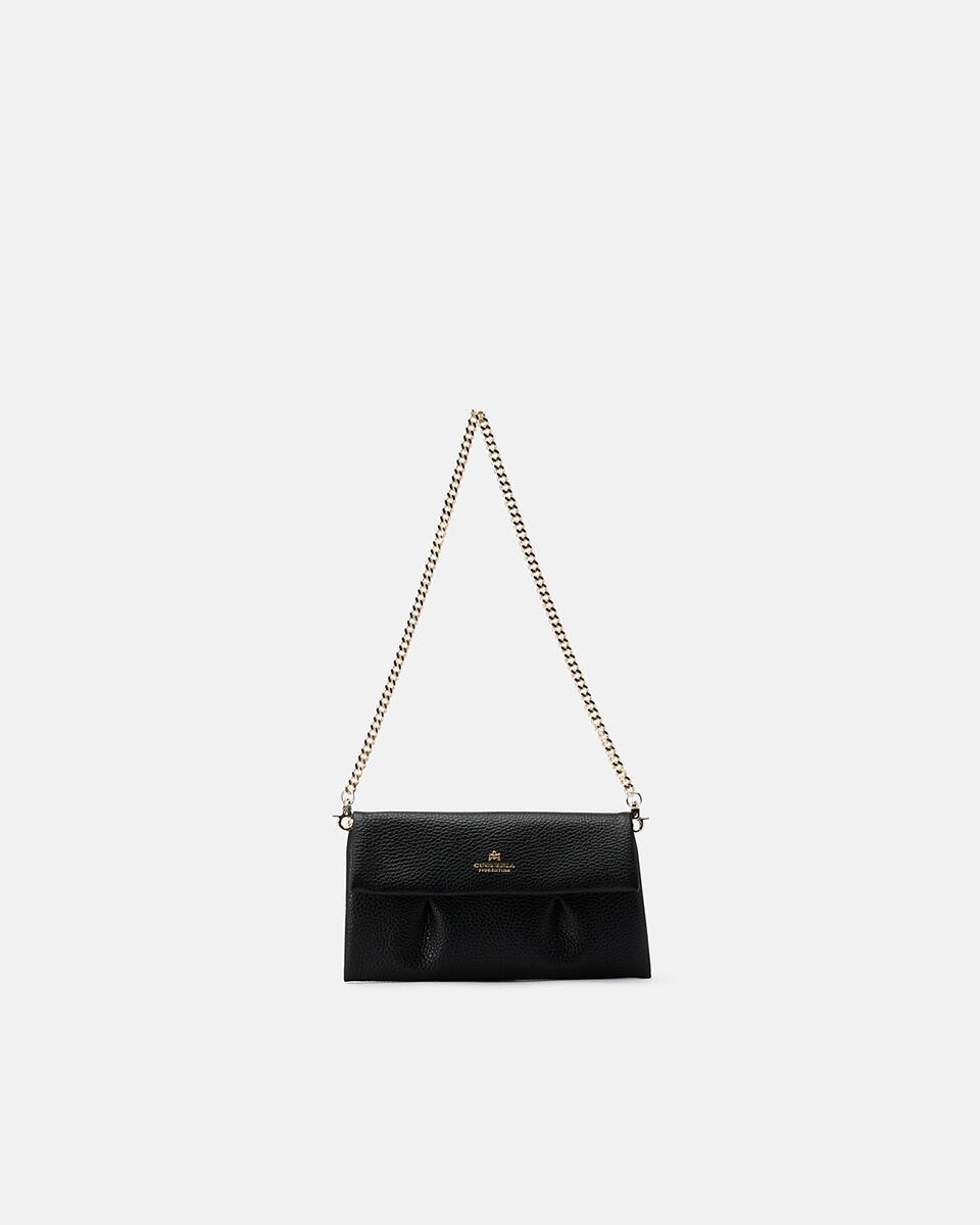 Catena rimovibile in metallo oro e chiusura con bottone magnetico.