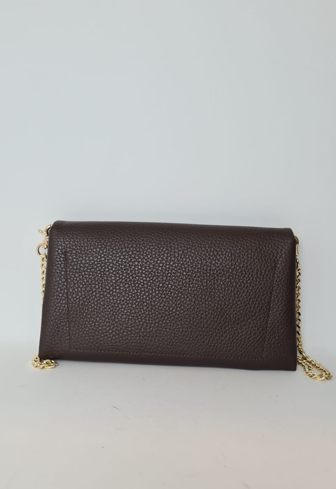 Catena rimovibile in metallo oro e chiusura con bottone magnetico.