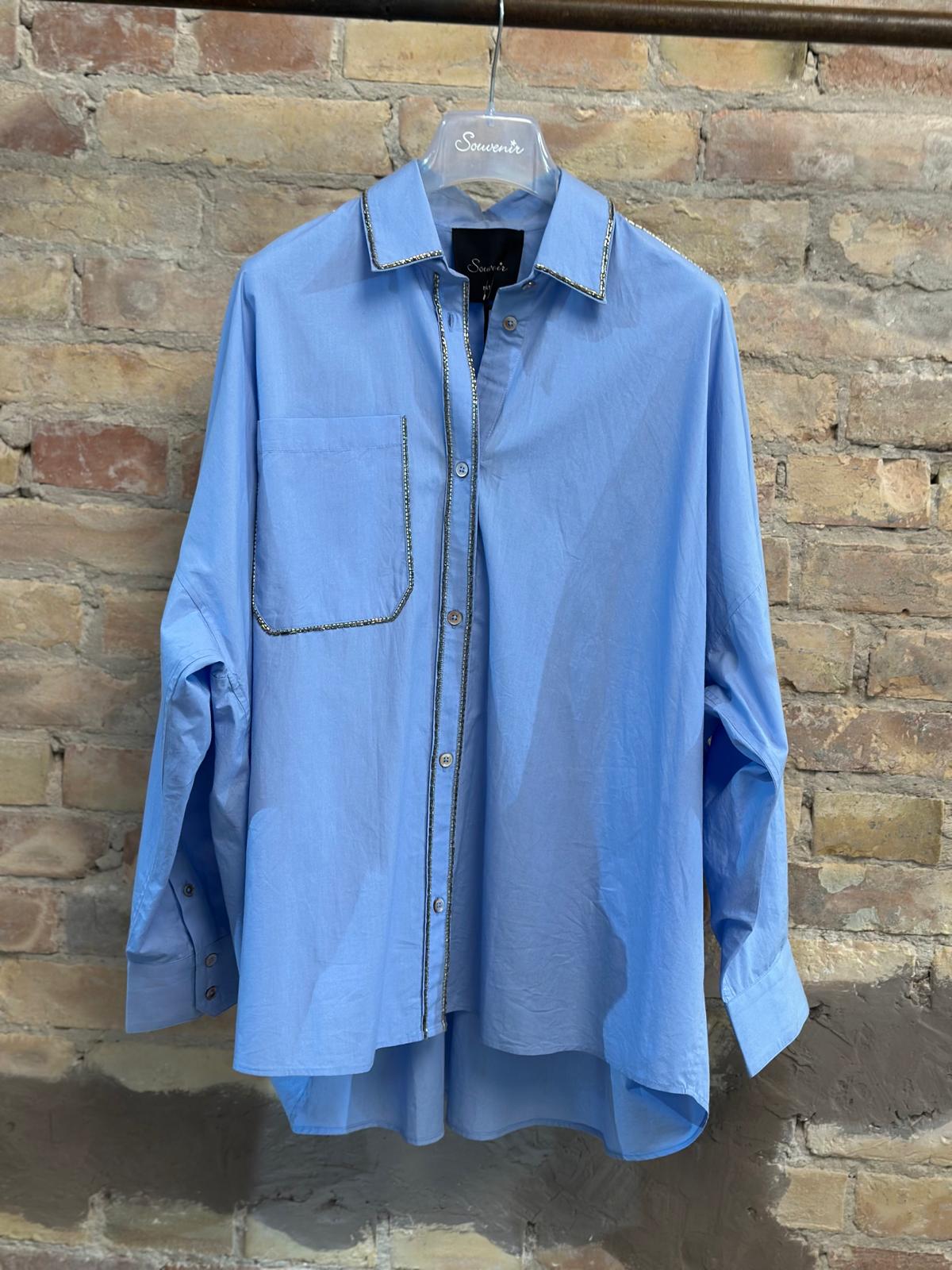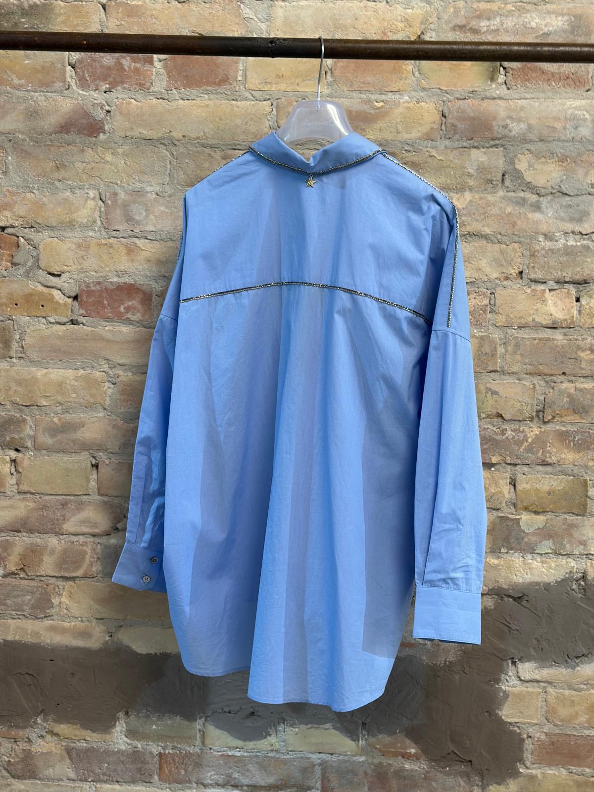 Camicia manica lunga con applicazioni di strass, vestibilità morbida.