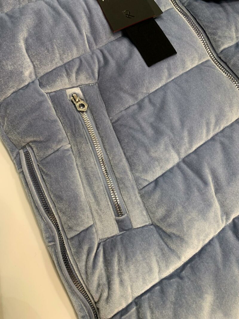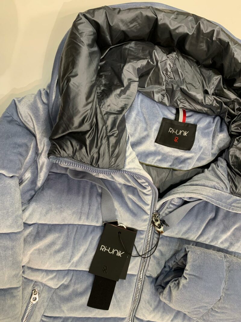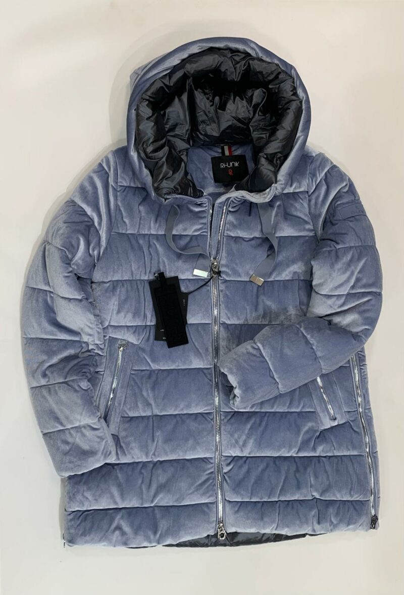Cappuccio avvolgente, tasche laterali e apertura sui fianchi con zip.