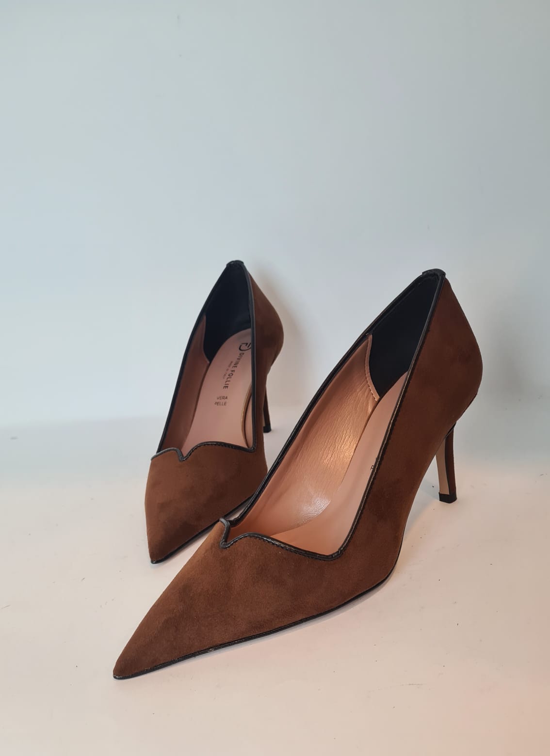 Décolleté “Divine Follie” in camoscio.