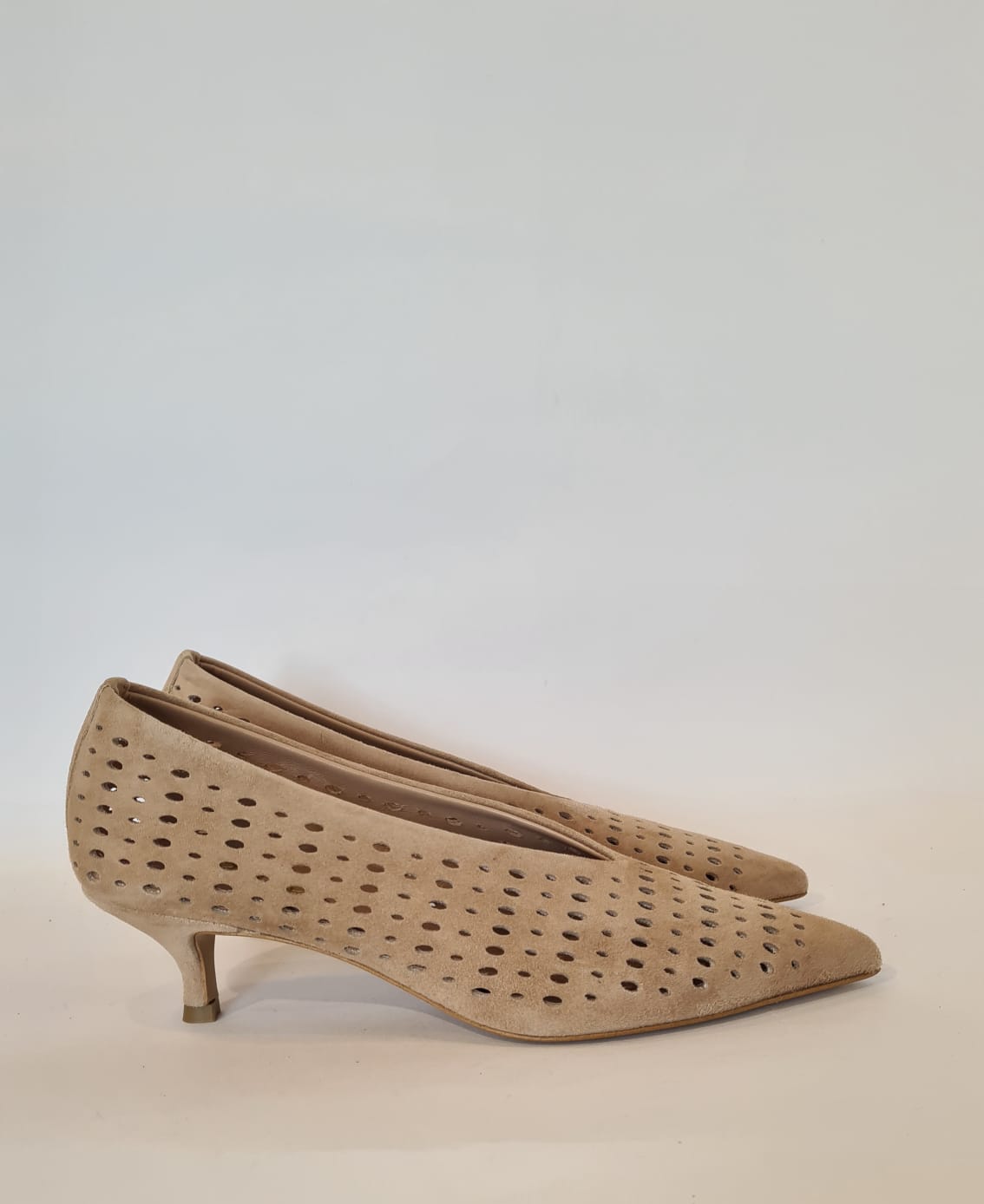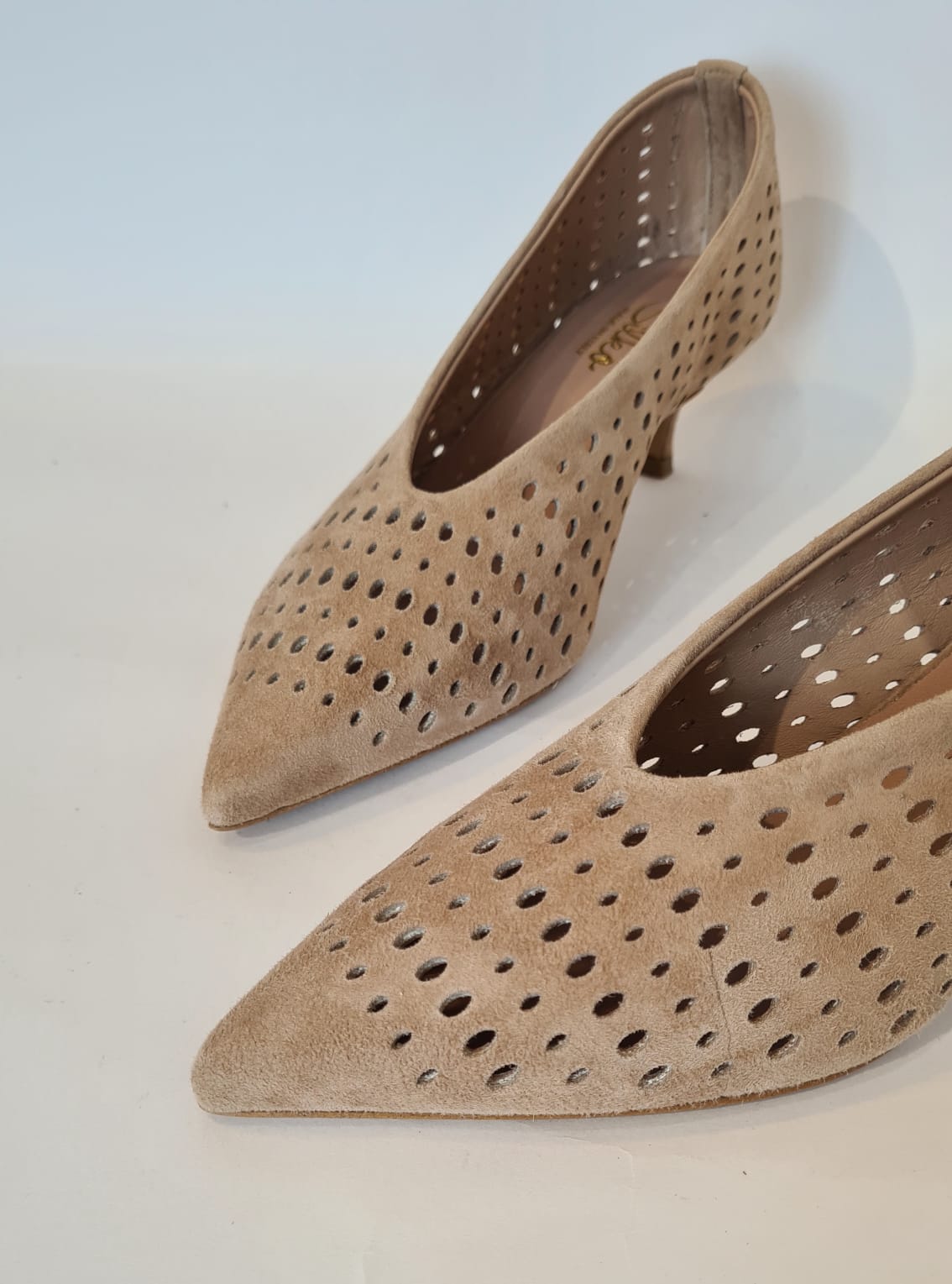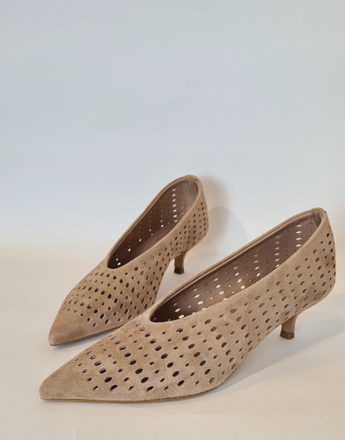 Décolleté “Silkò” in pelle scamosciata traforato.