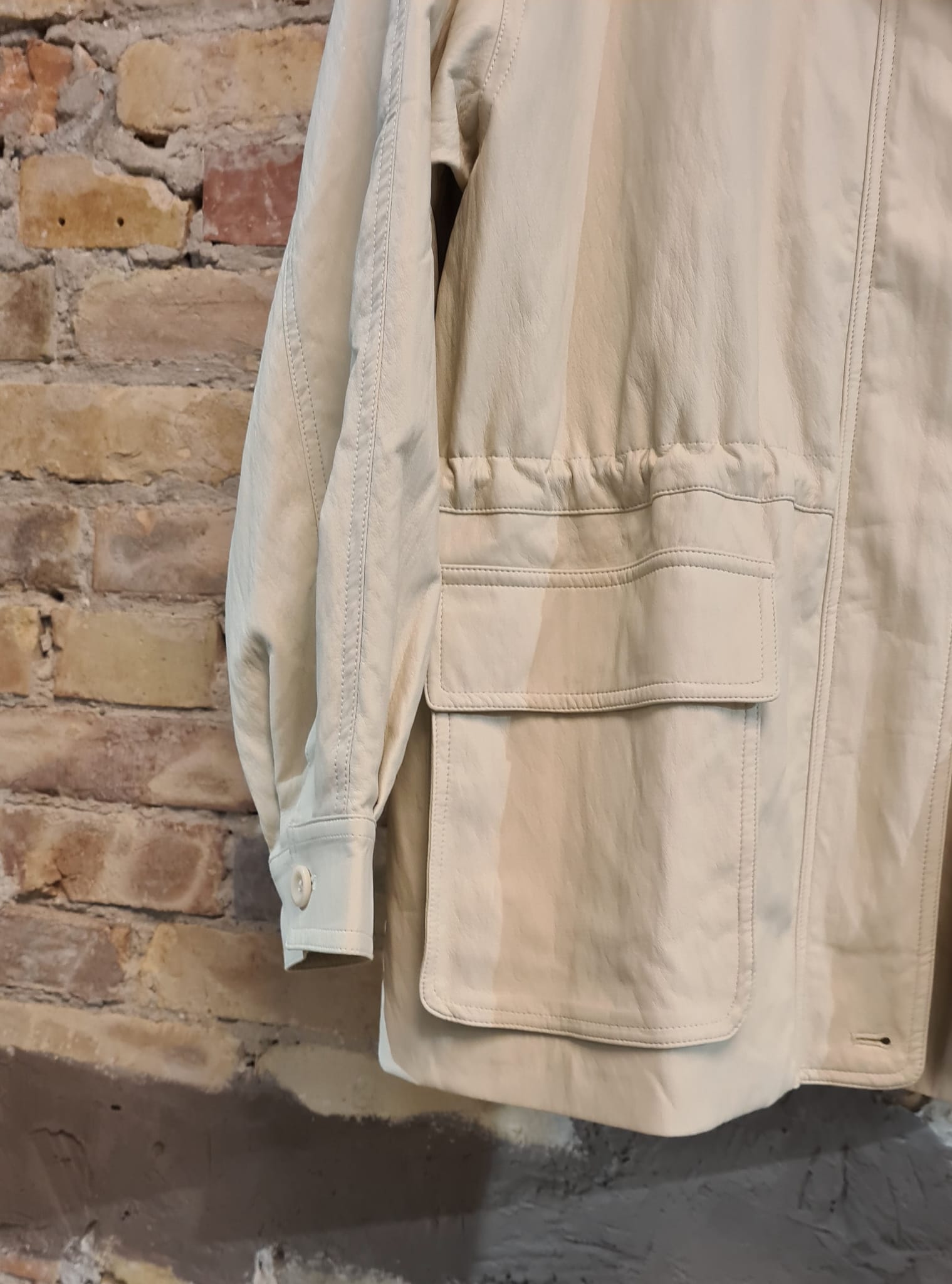 Giacca ecopelle con coulisse interna.