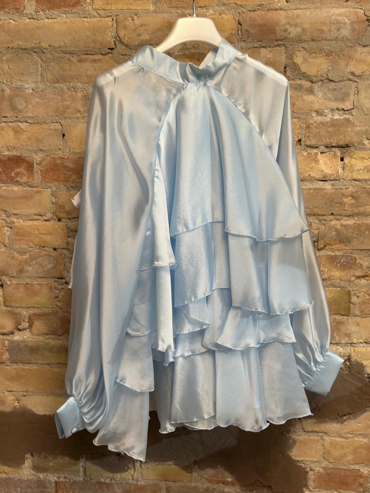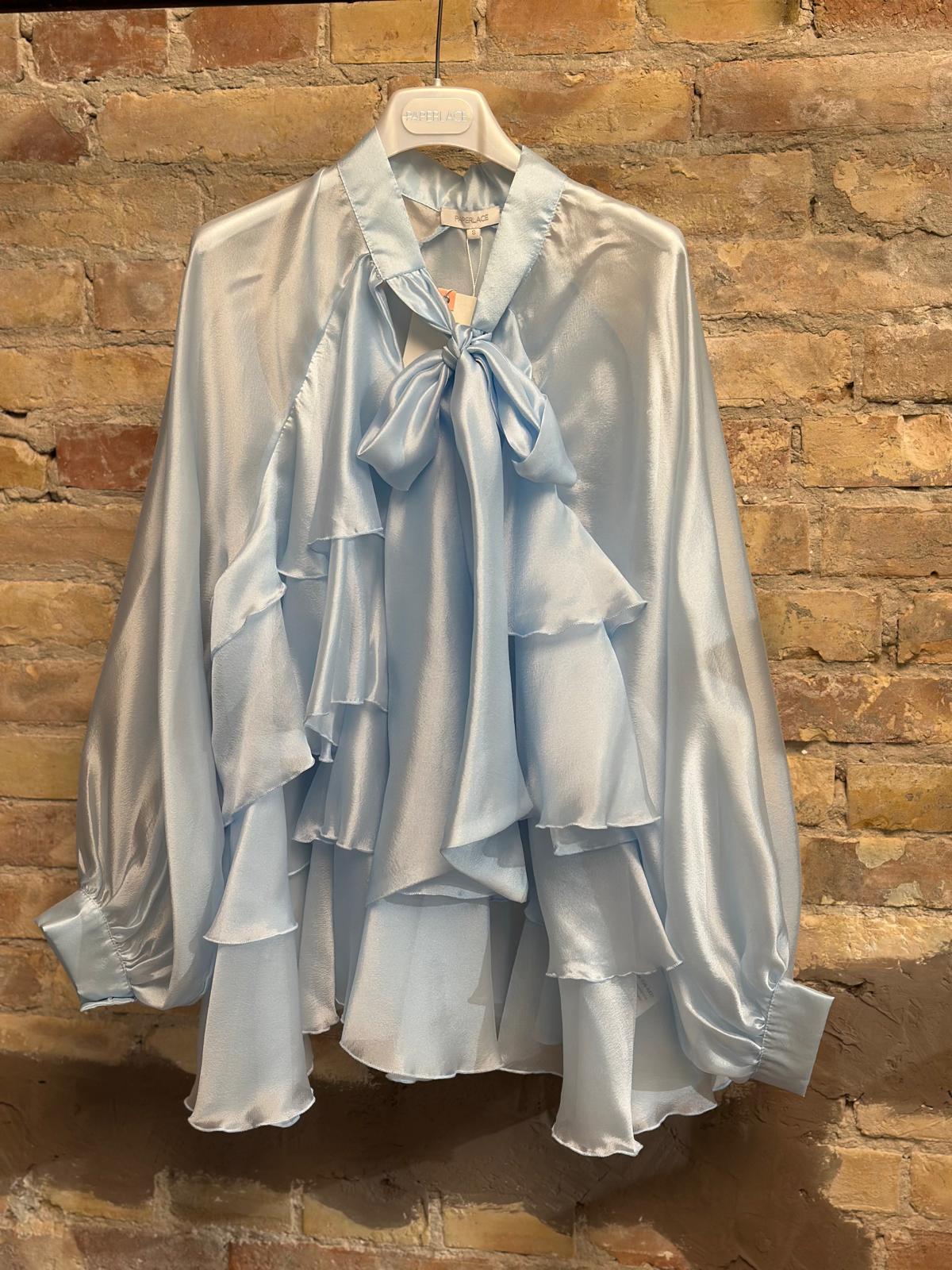 Camicia con balze e fiocco al collo.