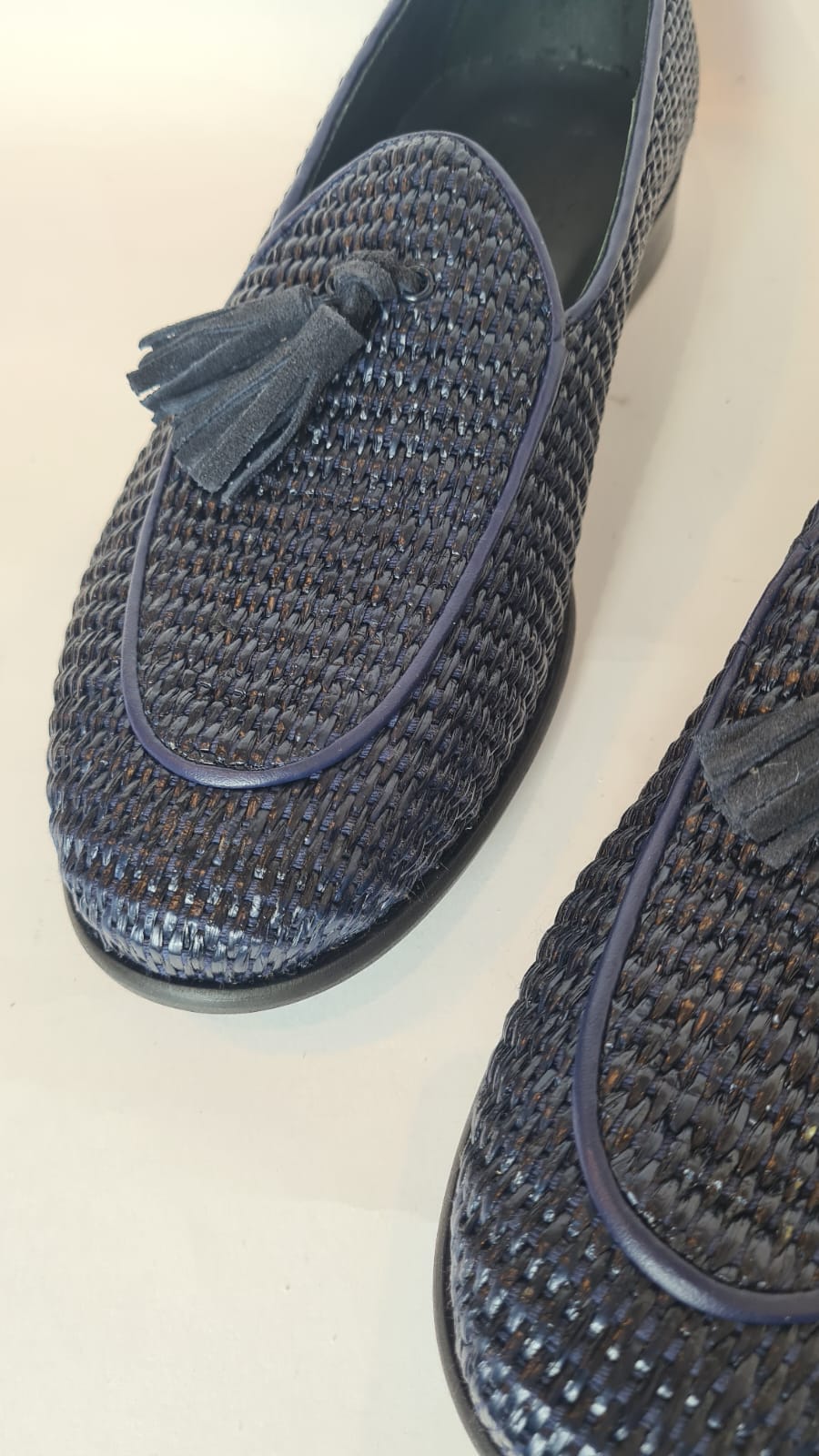 Mocassino in raffia, interno in pelle e fondo in cuoio.