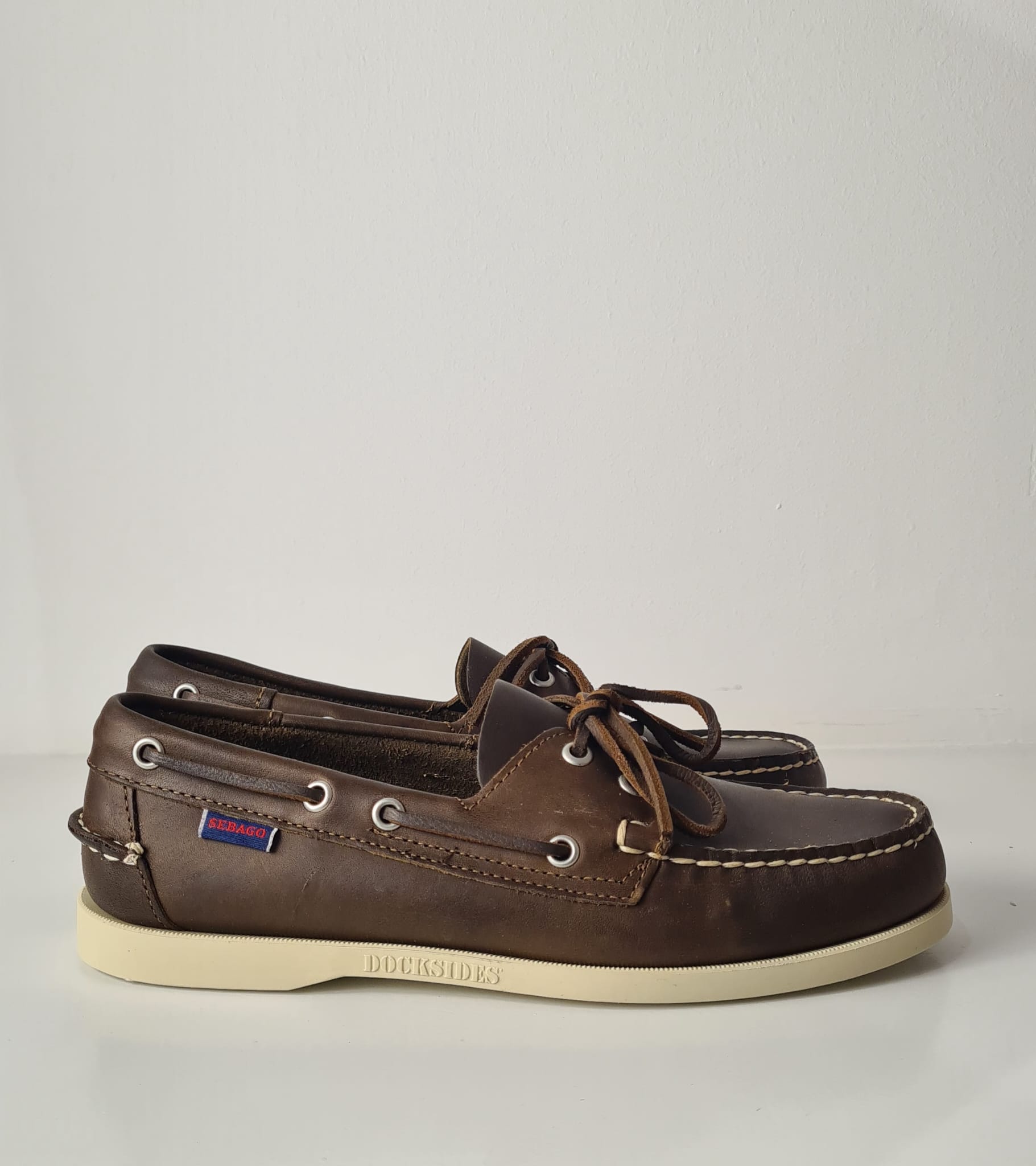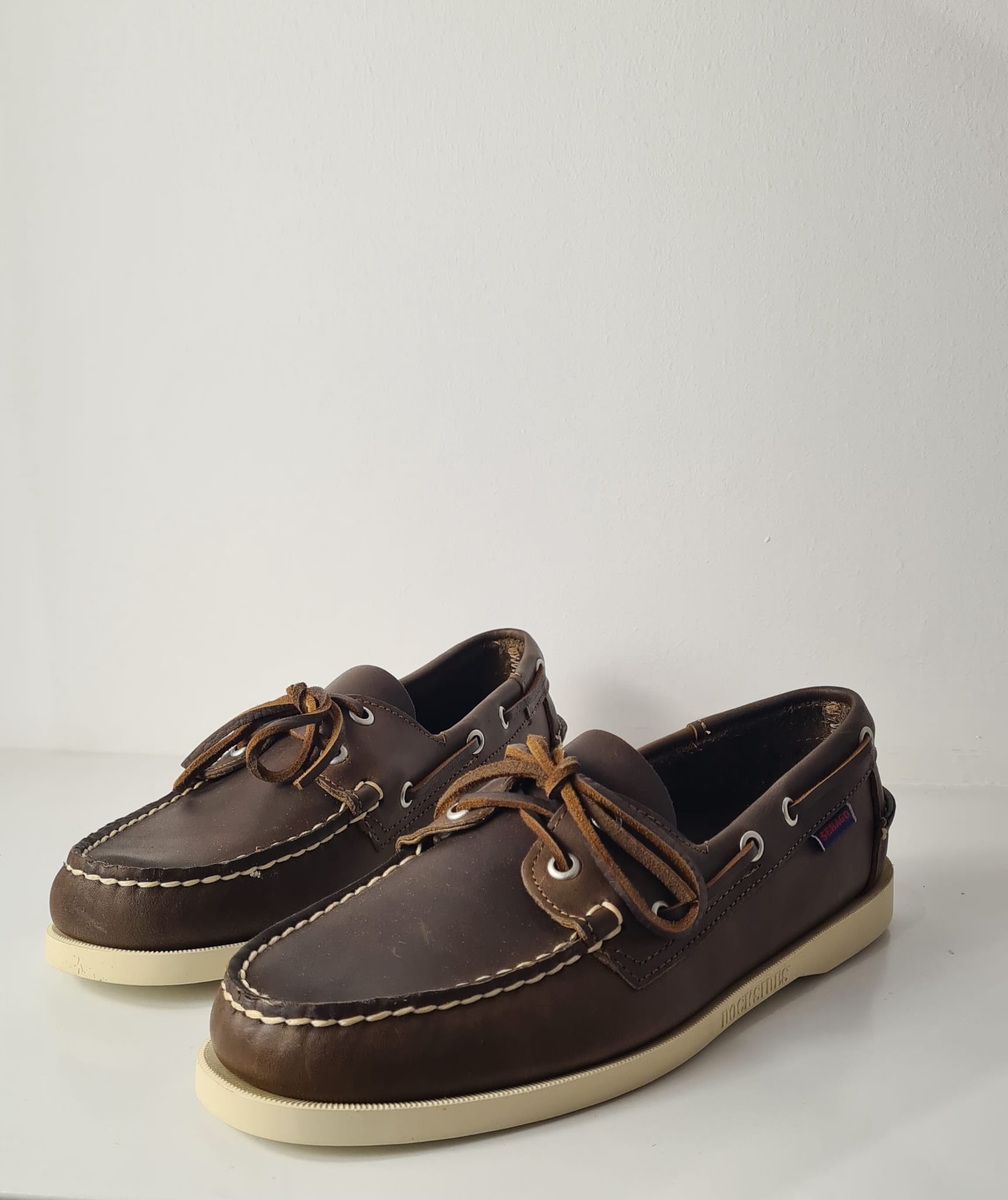 Mocassino “Sebago” in pelle scamosciata sfoderata e cucita a mano con la migliore lavorazione artigianale.