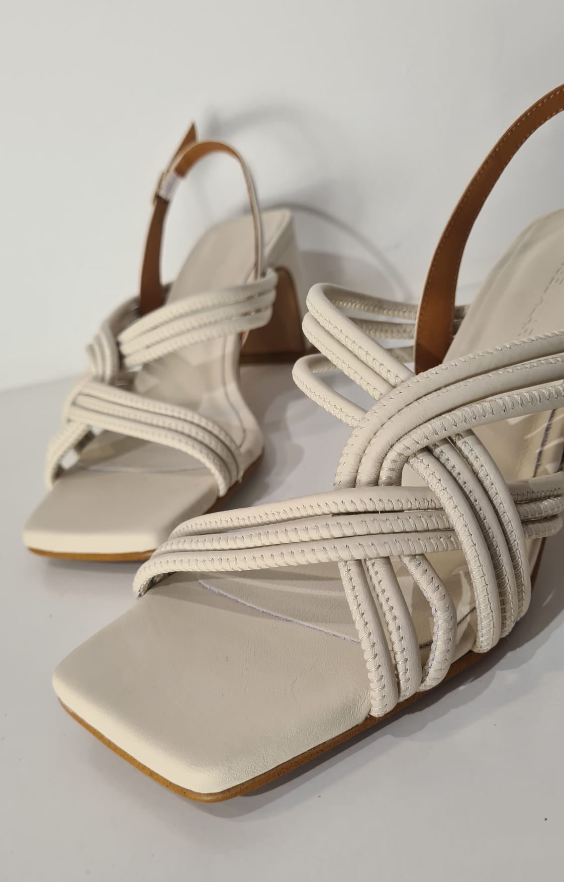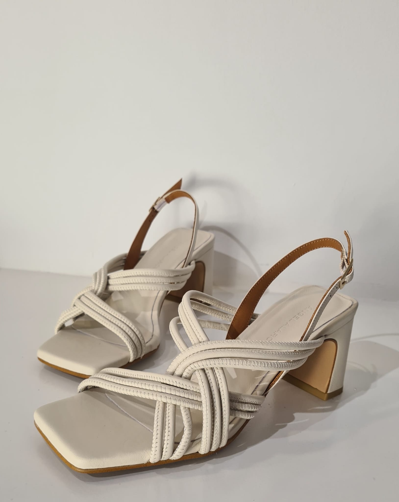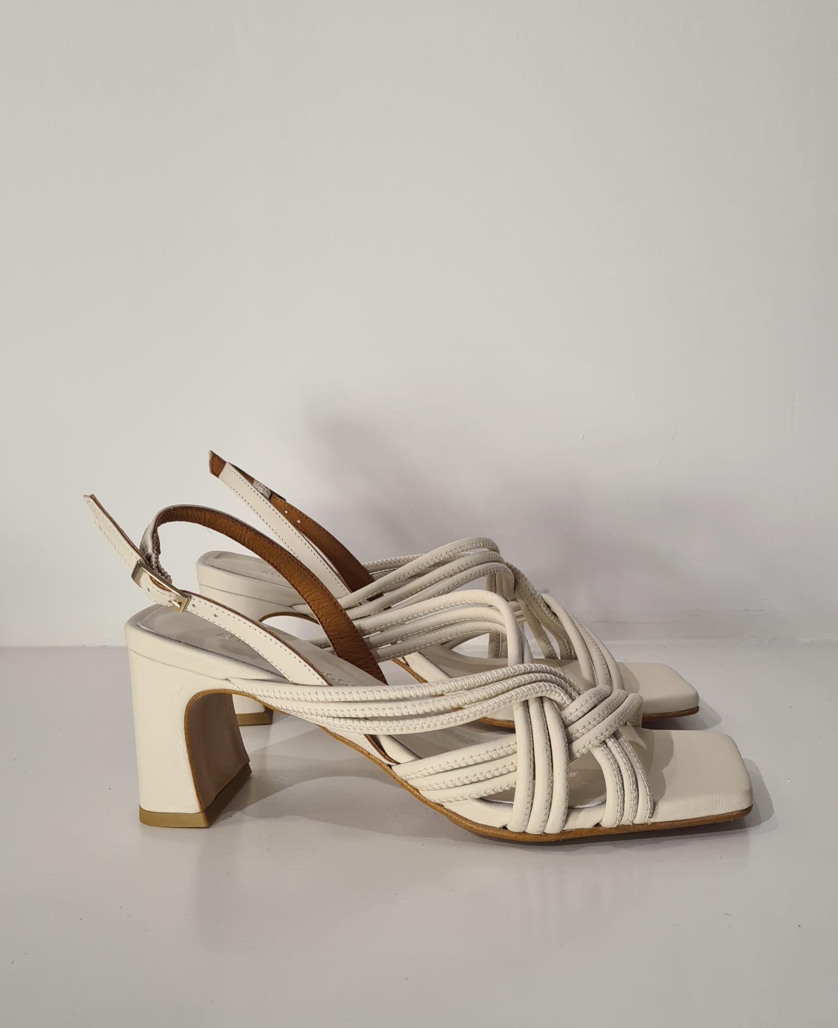Sandalo “Ángel Alarcón” tacco medio con intreccio di fasce.