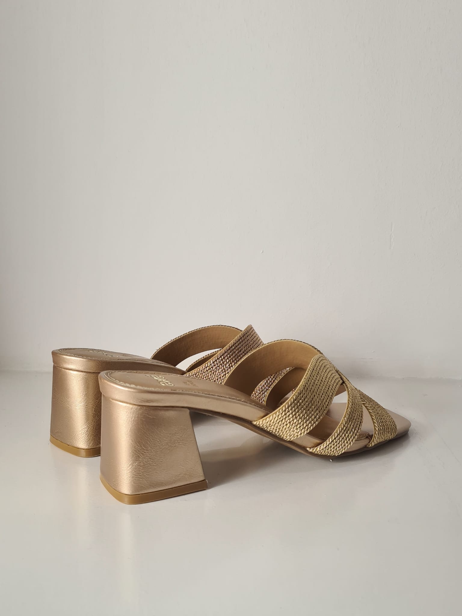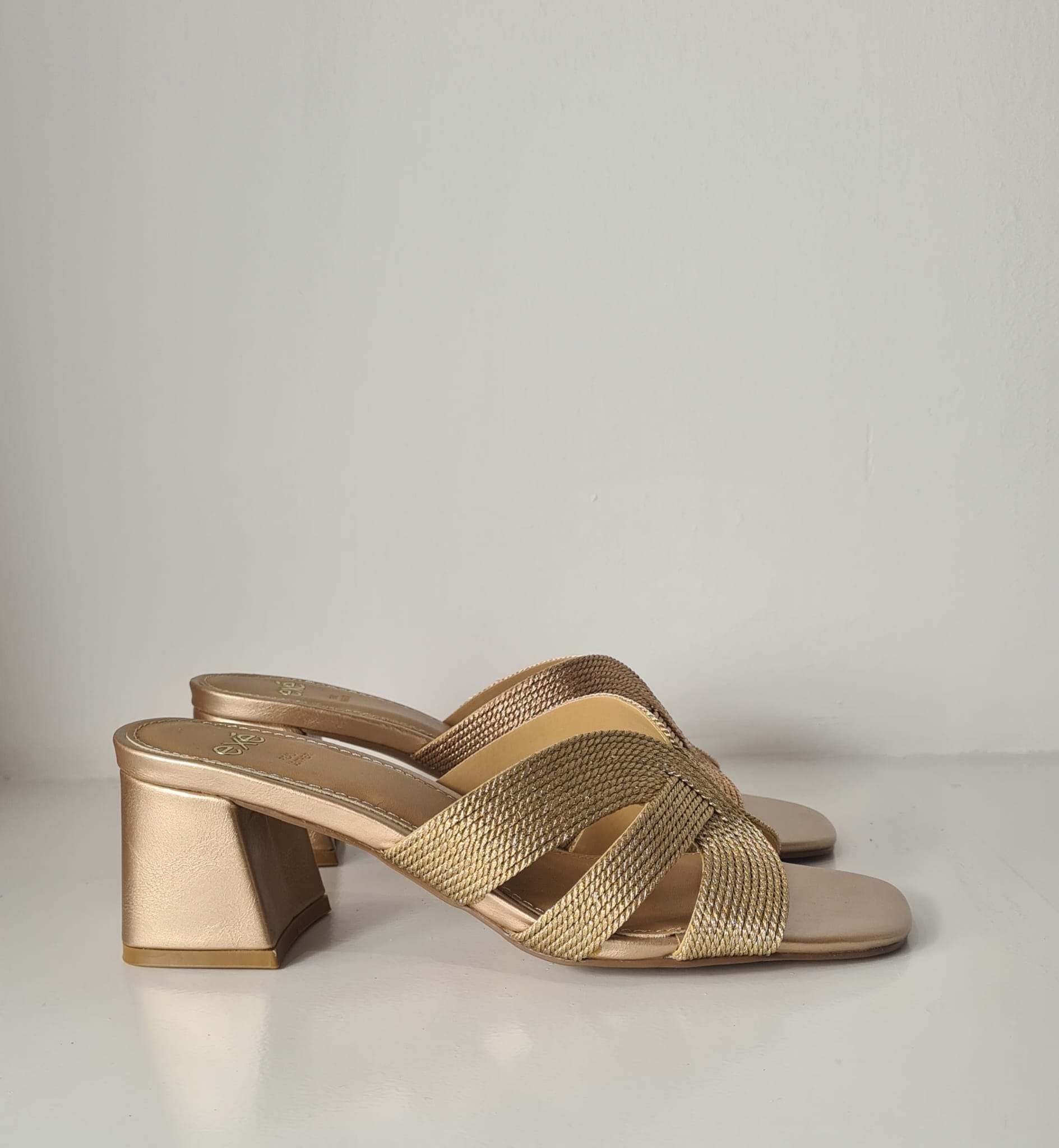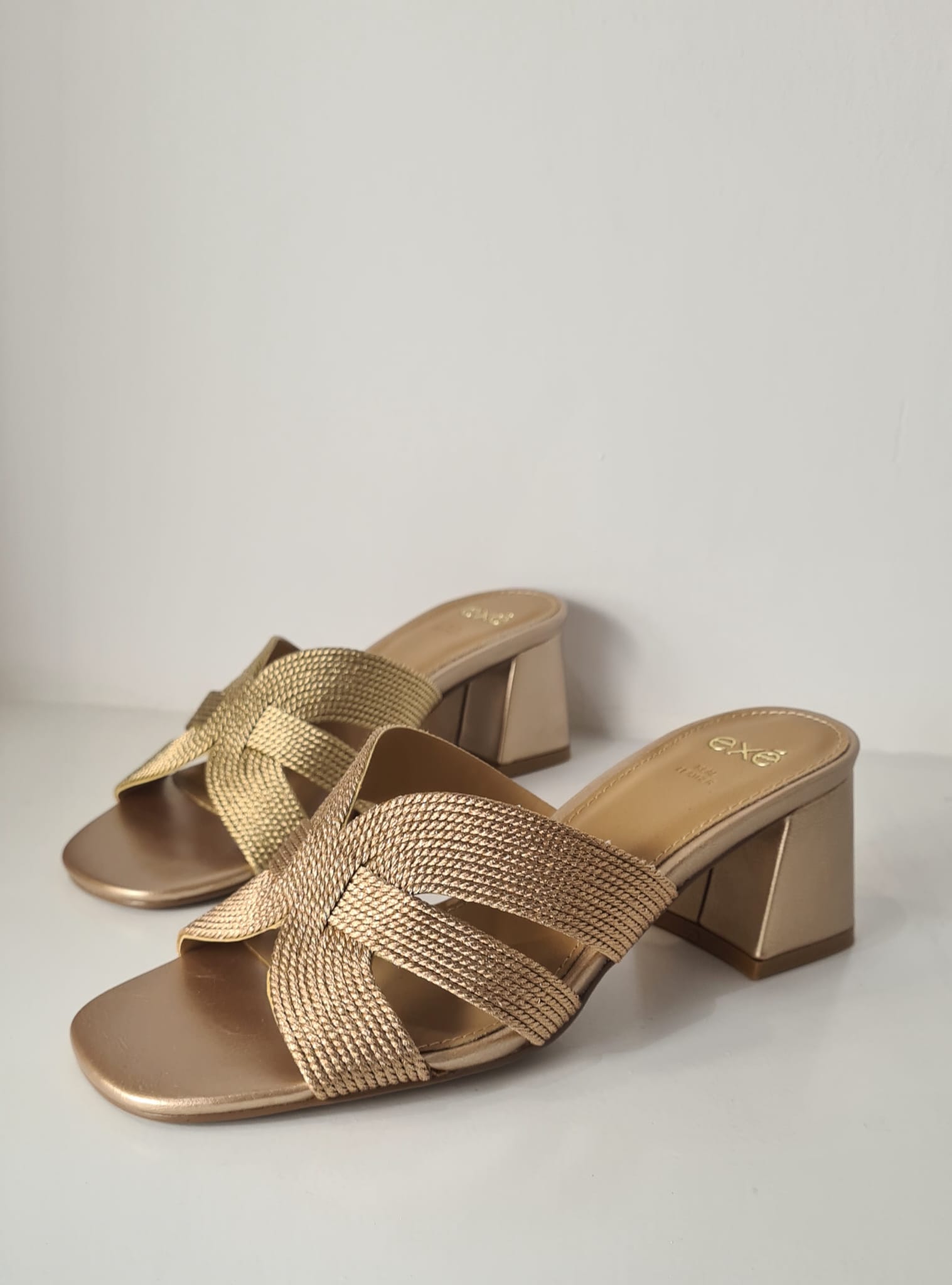 Sandalo “EXE” raffinato e comodo grazie al tacco quadro.