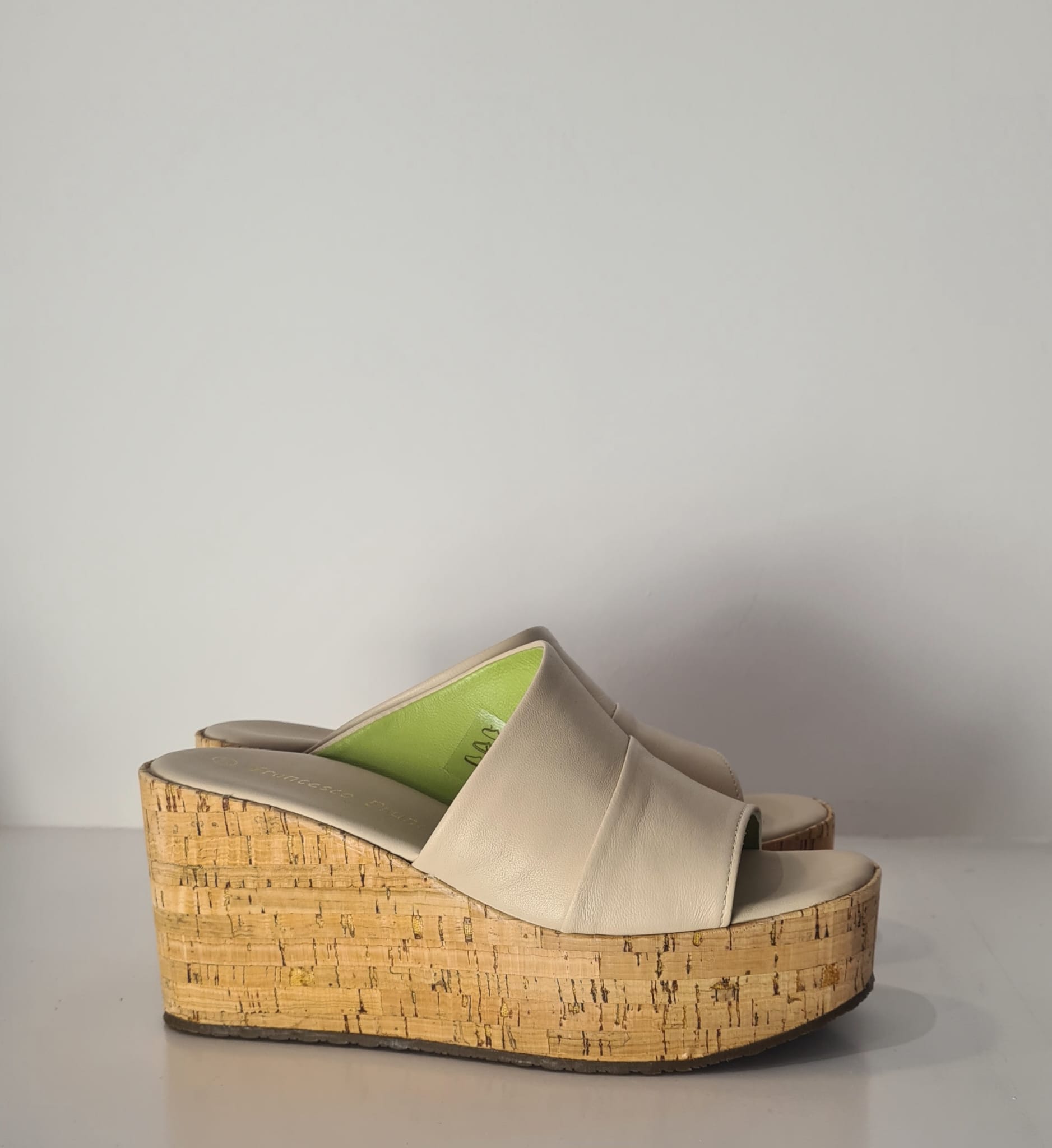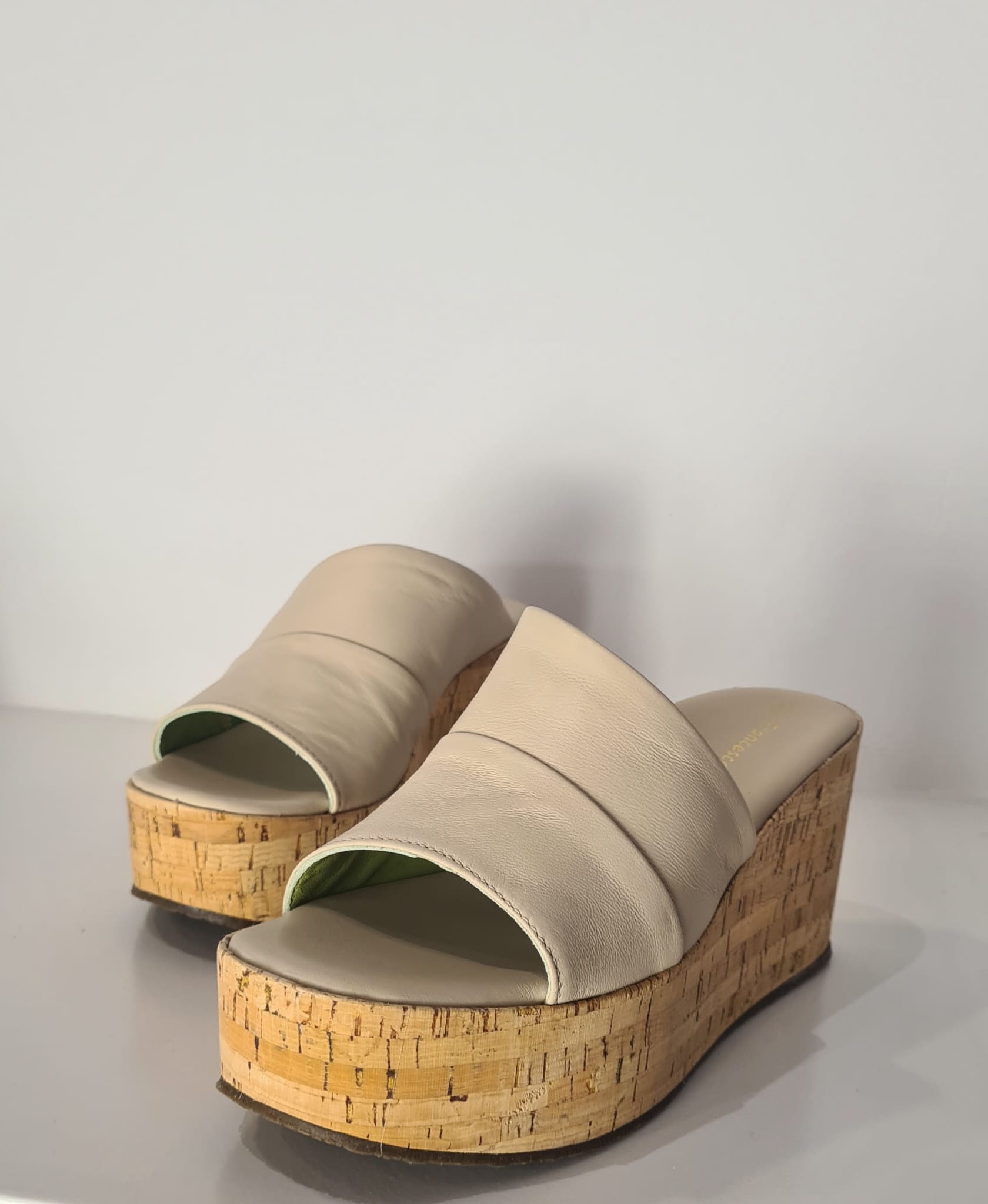 Sandalo in pelle con zeppa rivestita in sughero.