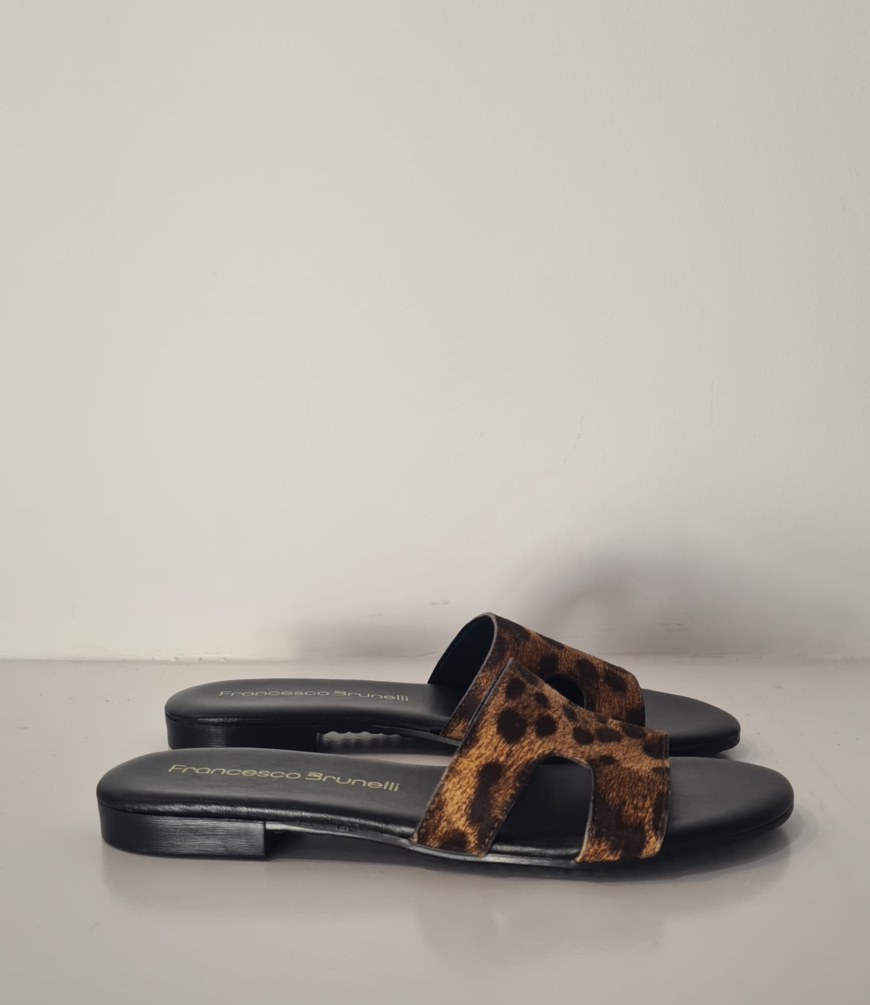 Sandalo flat in pelle effetto ghepardo.