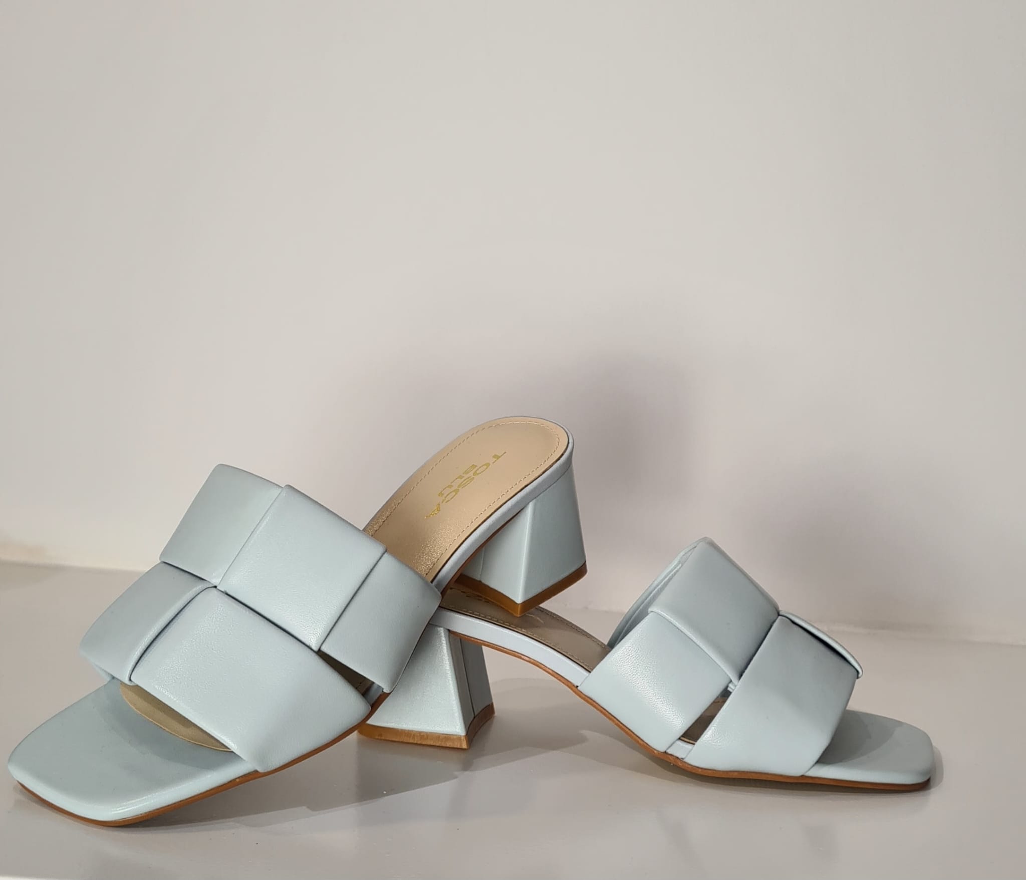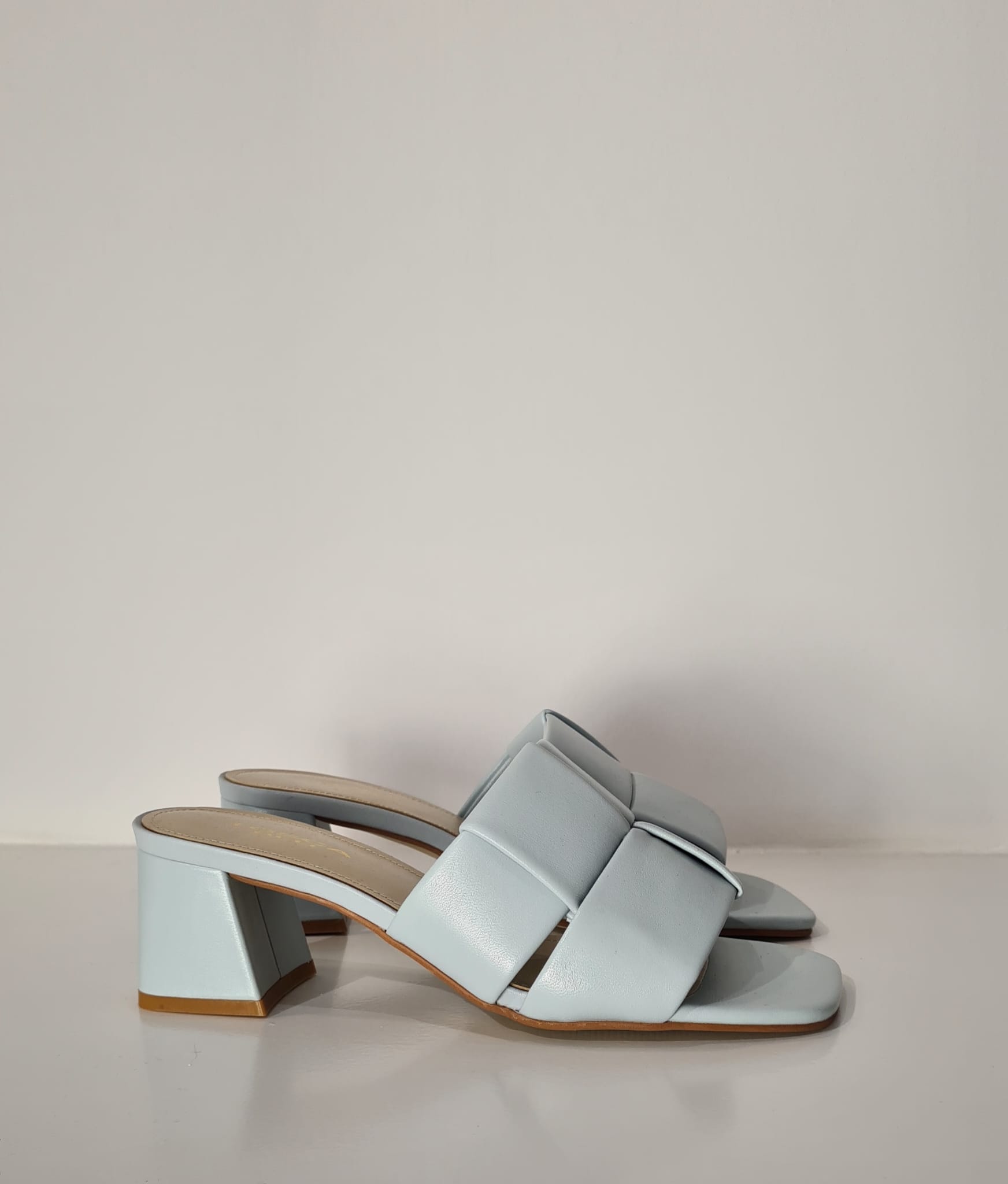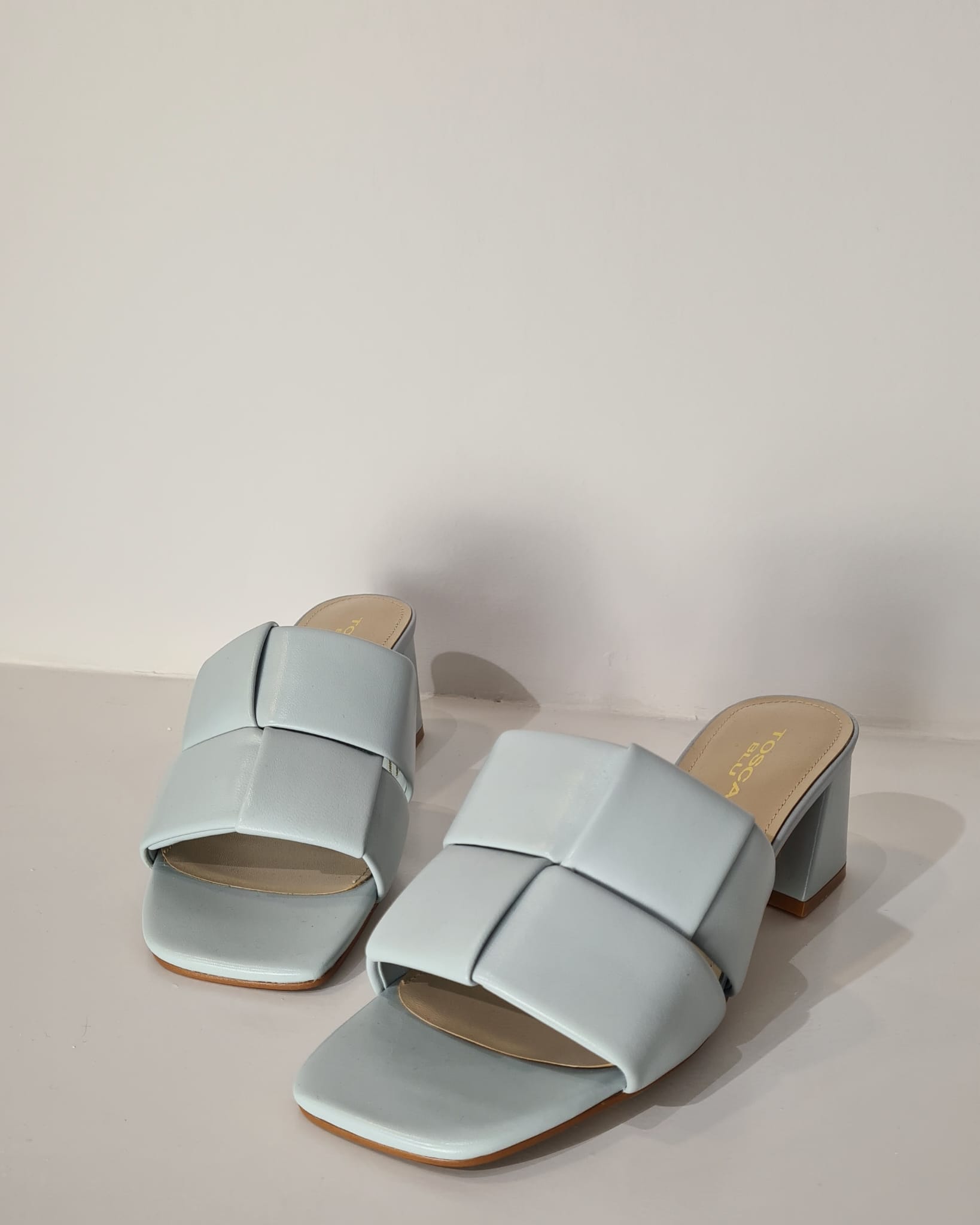 Scalzata “Tosca Blu” con tomaia in pelle intrecciata.