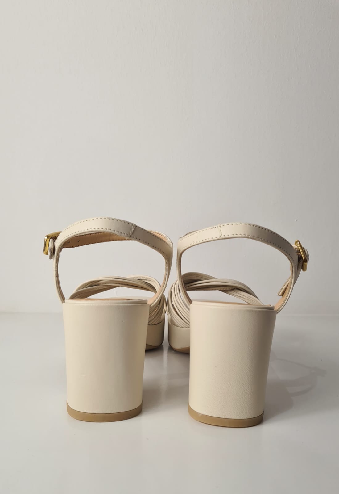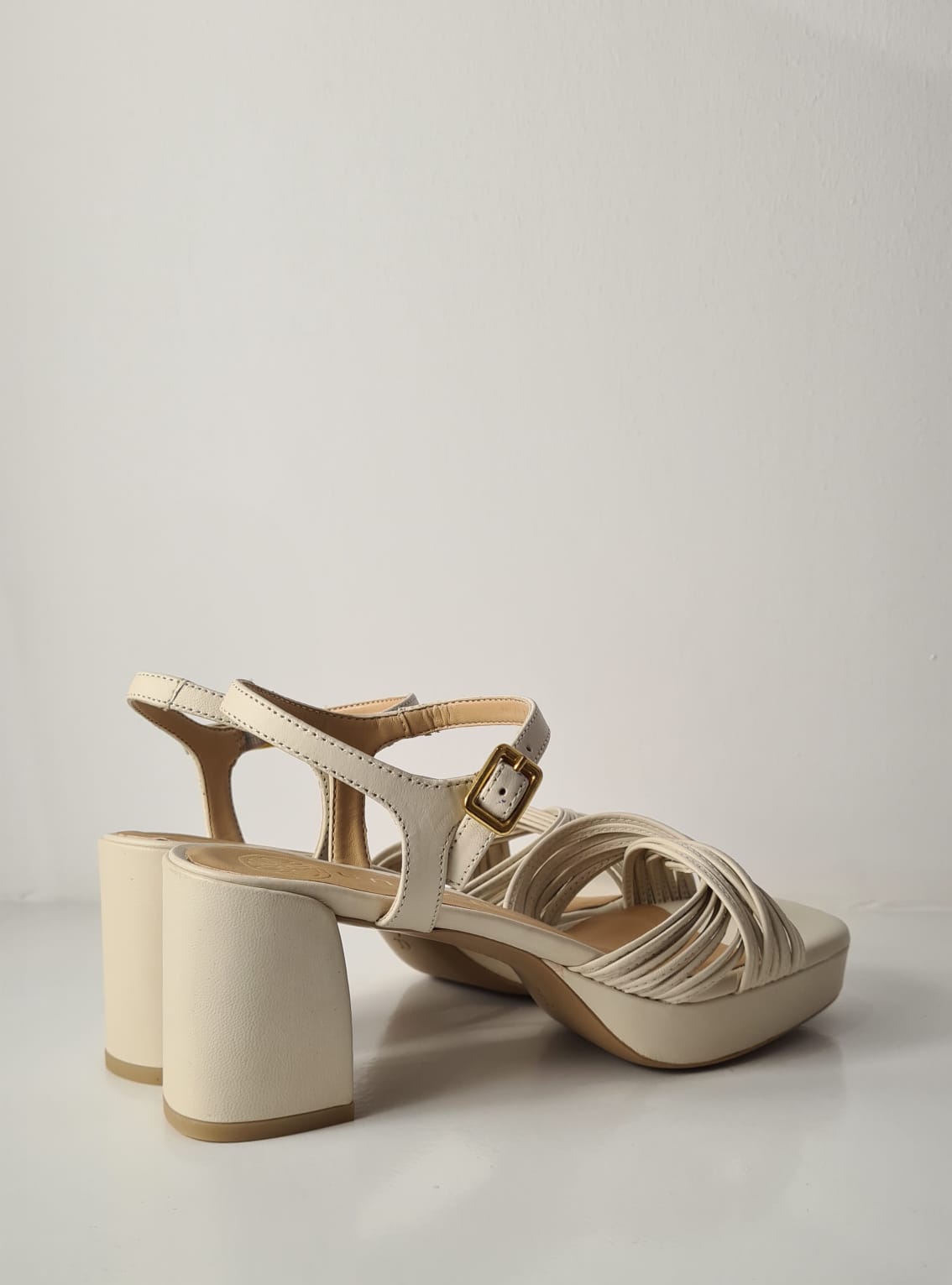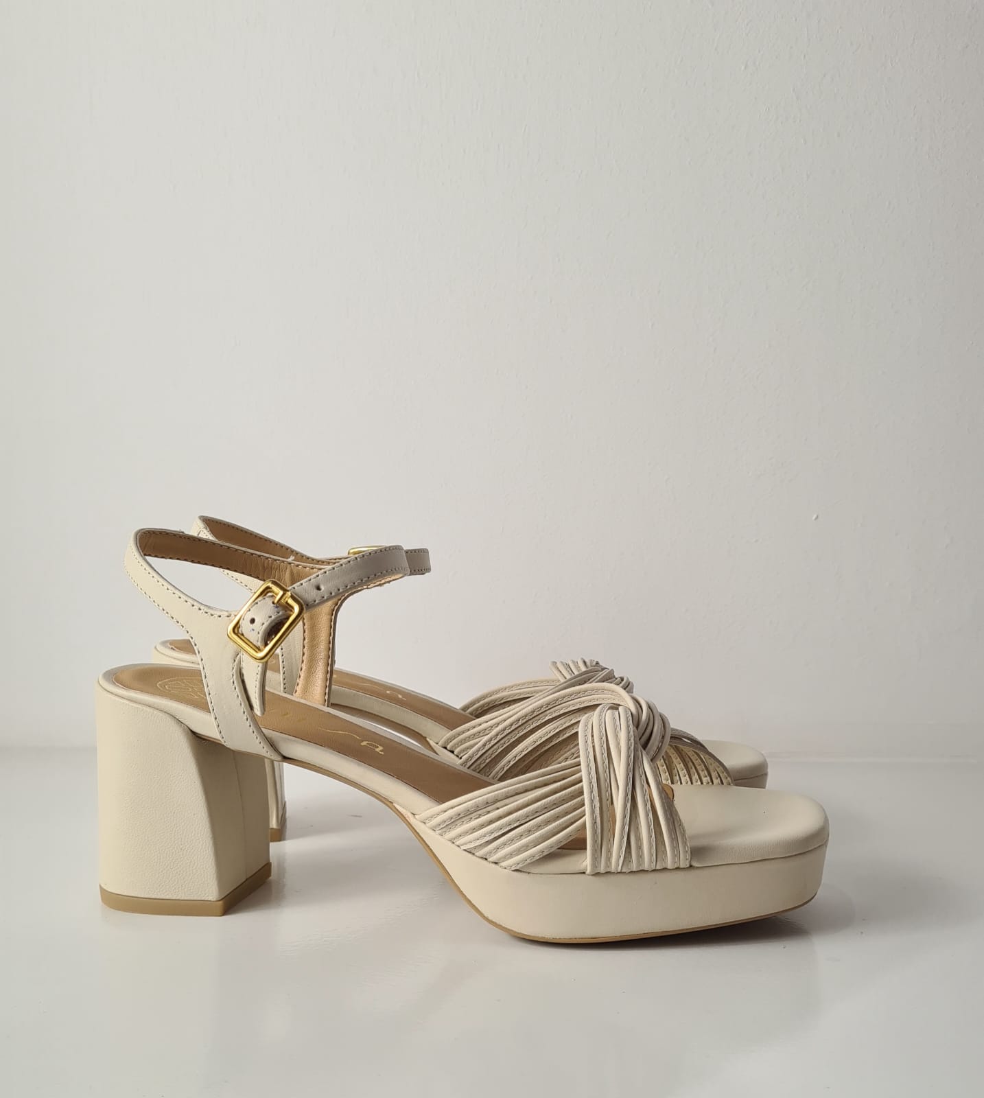 Sandalo “Unisa” in vitello, fasce intrecciate avorio.