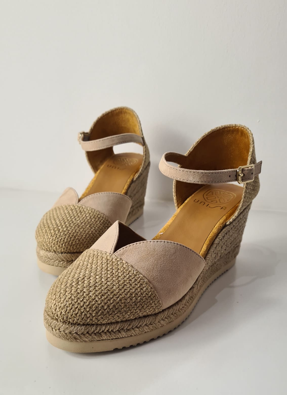 Espadrillas “Unisa” in pelle scamosciata e punta tonda in tessuto riciclato Ecolino.