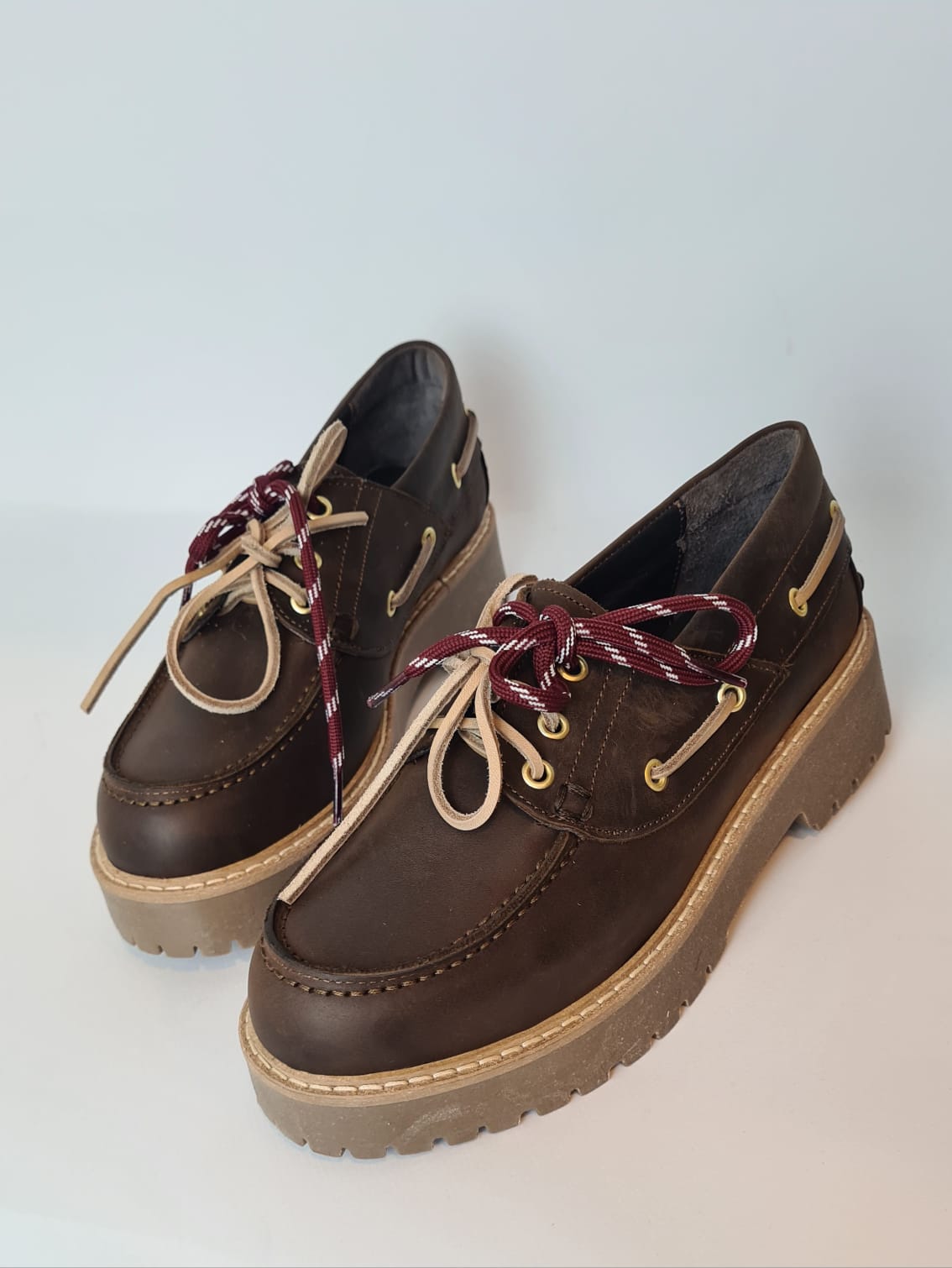 Scarpa da barca in pelle, suola (platform) in gomma.