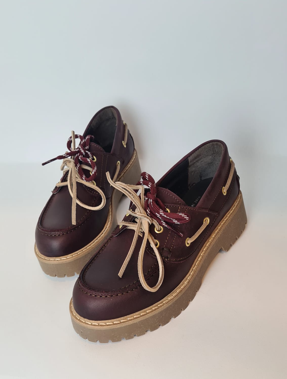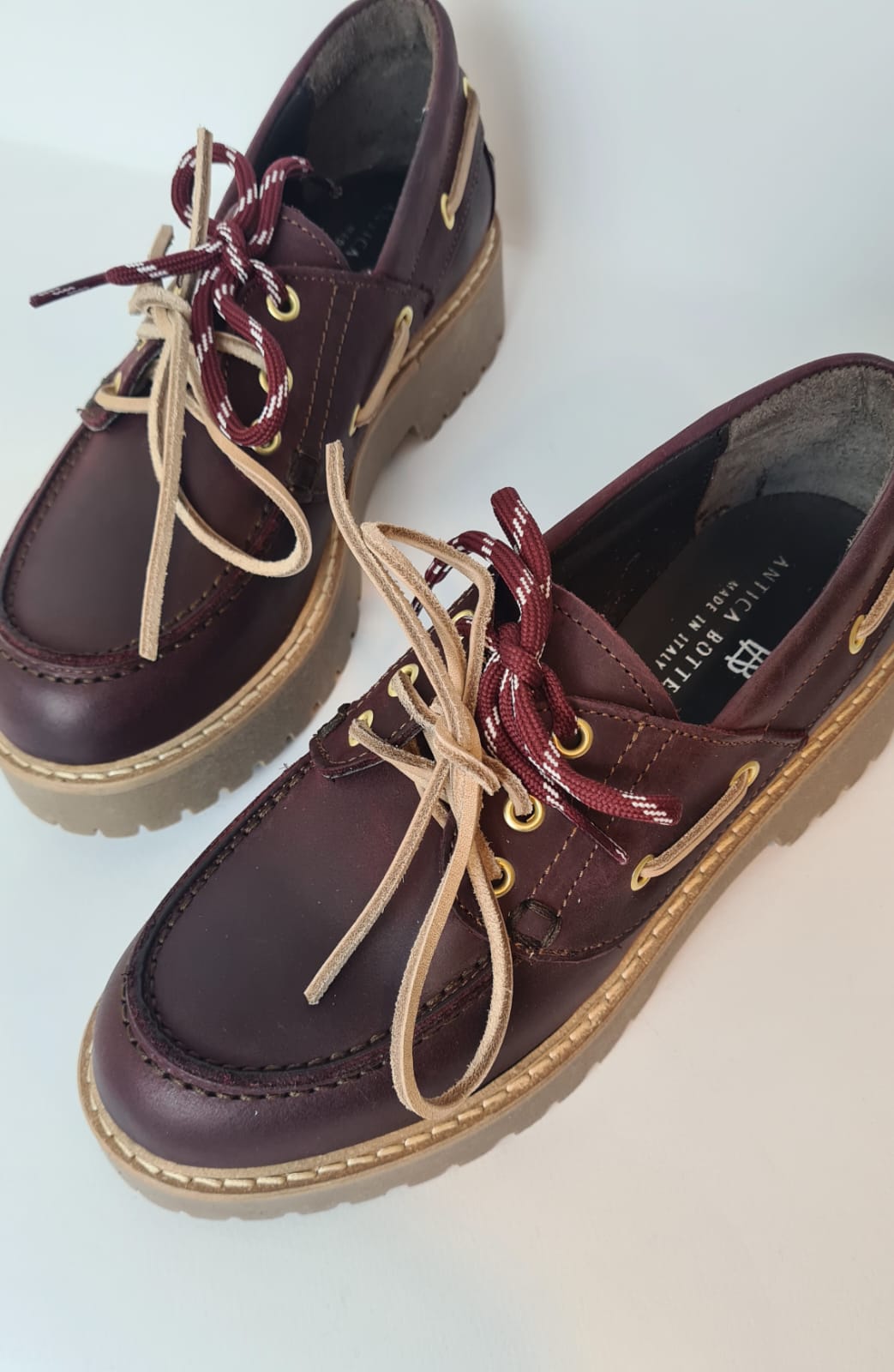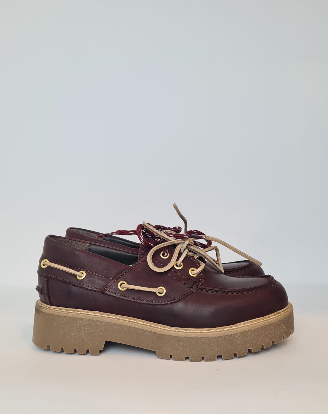 Scarpa da barca in pelle, suola (platform) in gomma.