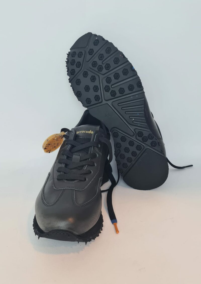 Sneakers “Barracuda” Tomaia in suede e tessuto tecnico , suola interna in pelle, fondo in gomma, logo sul retro del tallone, rivestimento tomaia in spugna.