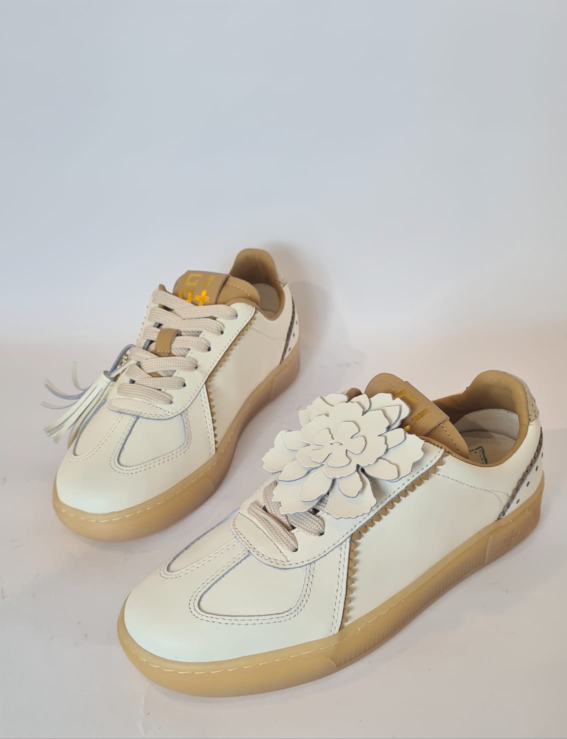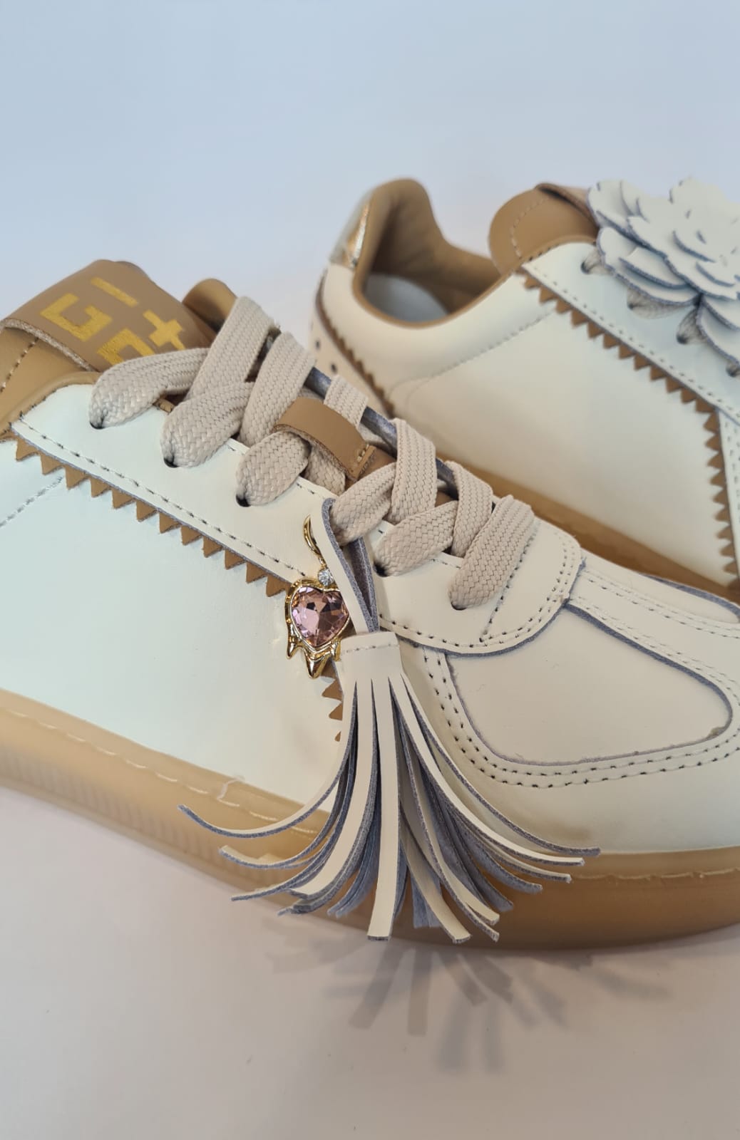 Sneakers “GIO+” in pelle, raffinate con charms rimovibili.