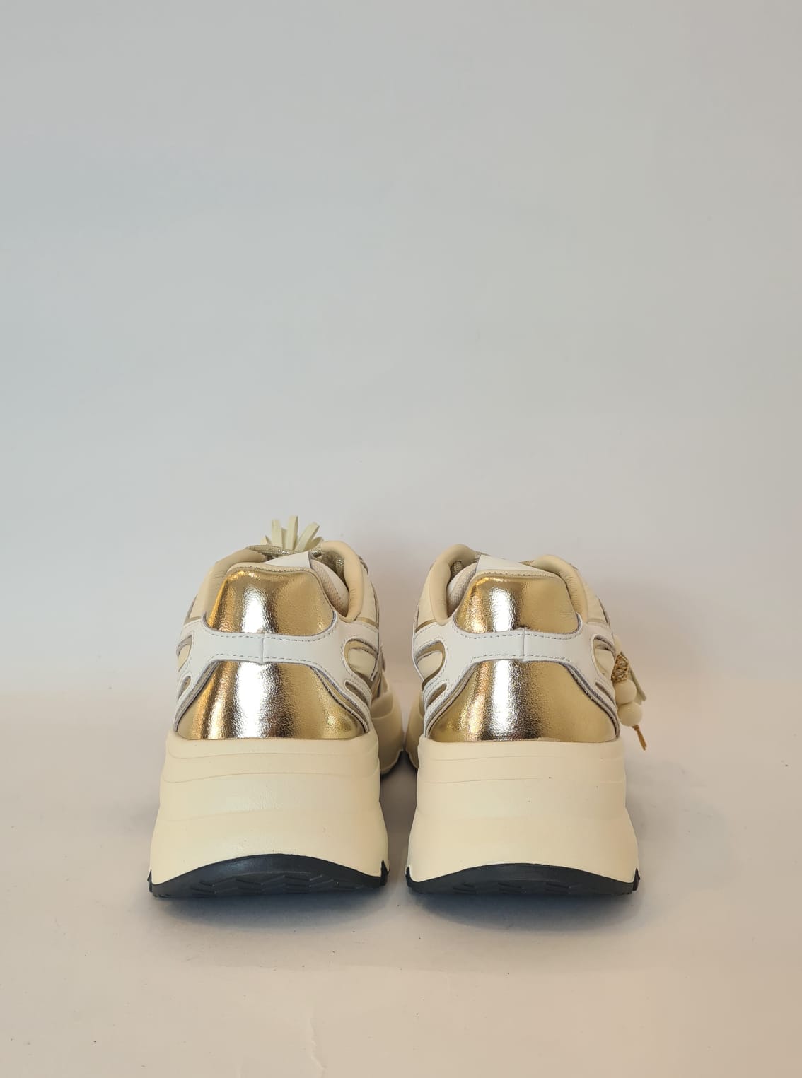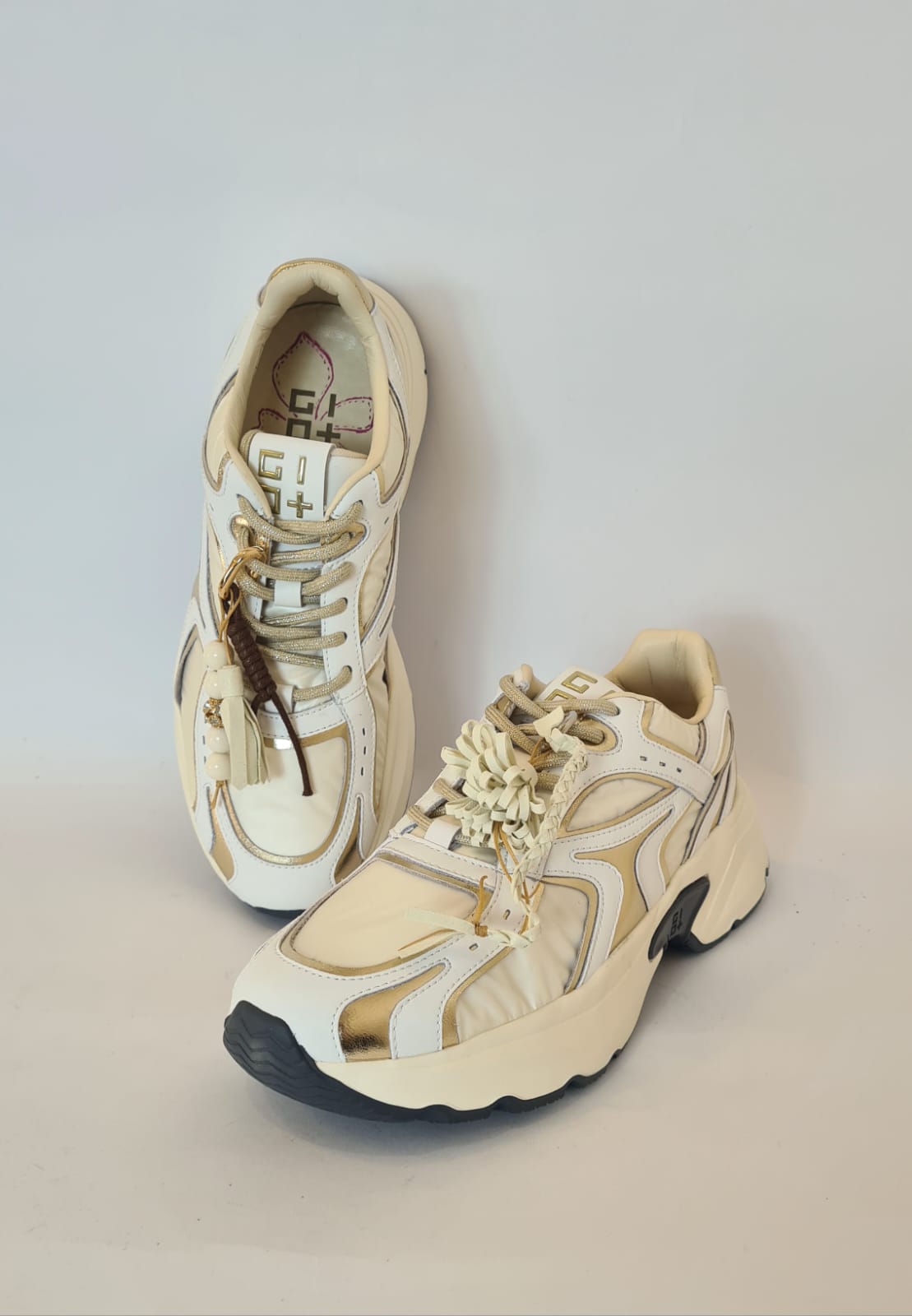 Sneakers “GIO+” in tessuto tekno con charms rimovibili e lacci laminati.