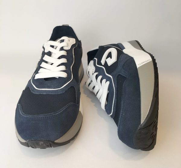 Sneakers “Guardiani” realizzata in camoscio e tessuto tecnico, con logo sui lati. Particolarmente confortevole e leggera, perfetta per ammortizzare ogni singolo passo.