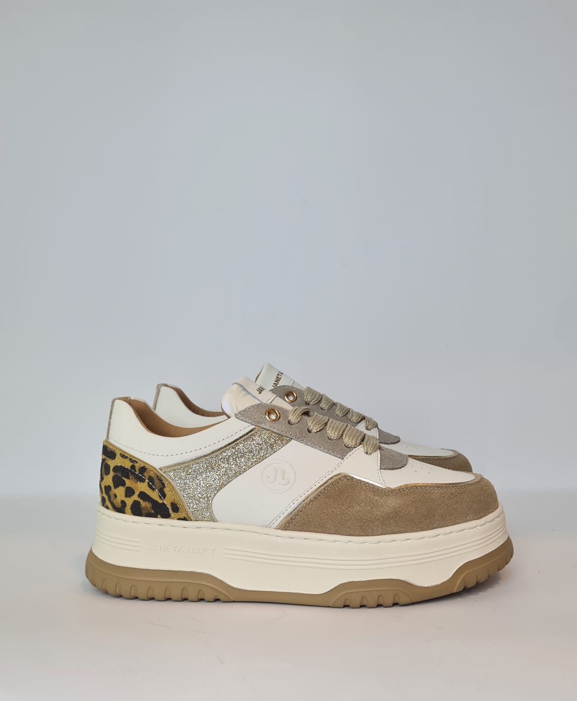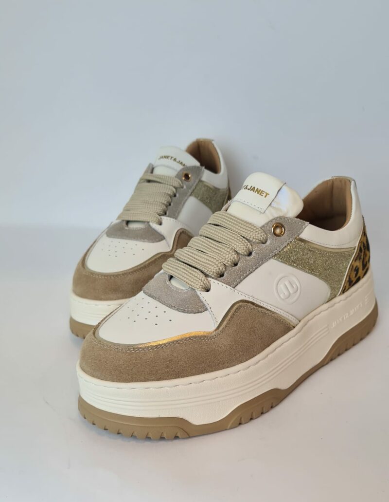 Sneakers “Janet & Janet” con inserti in camoscio, glitterati e maculati.