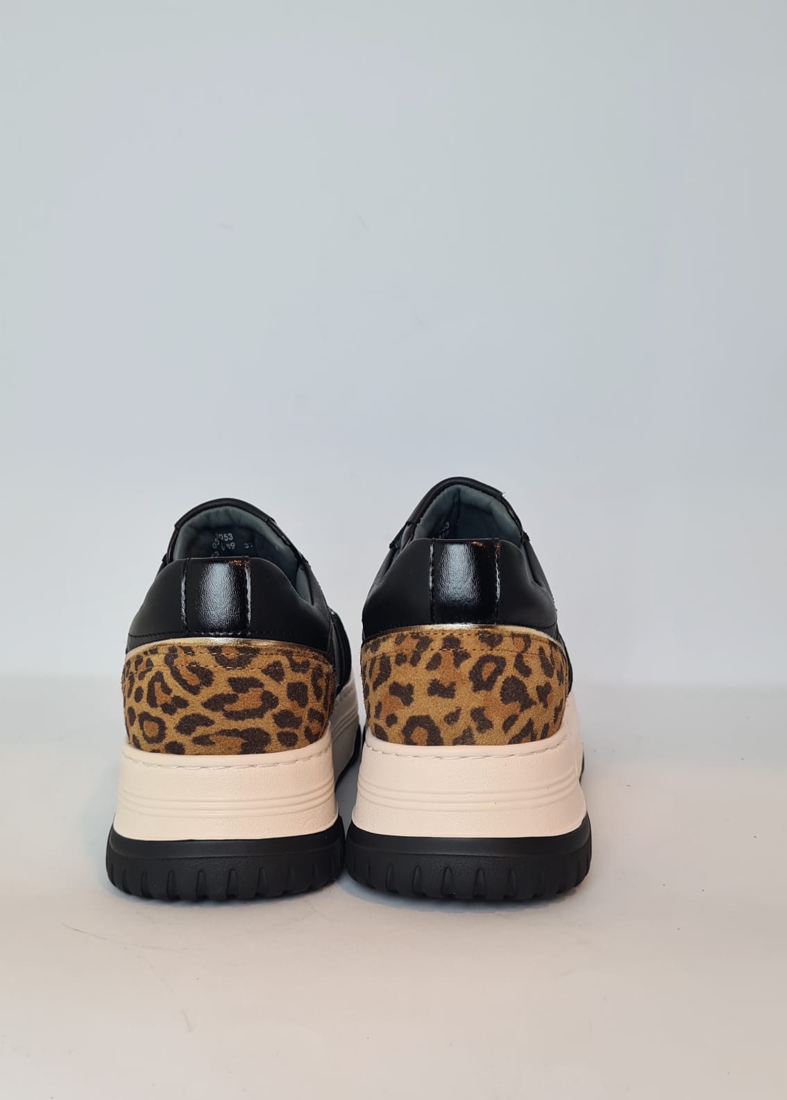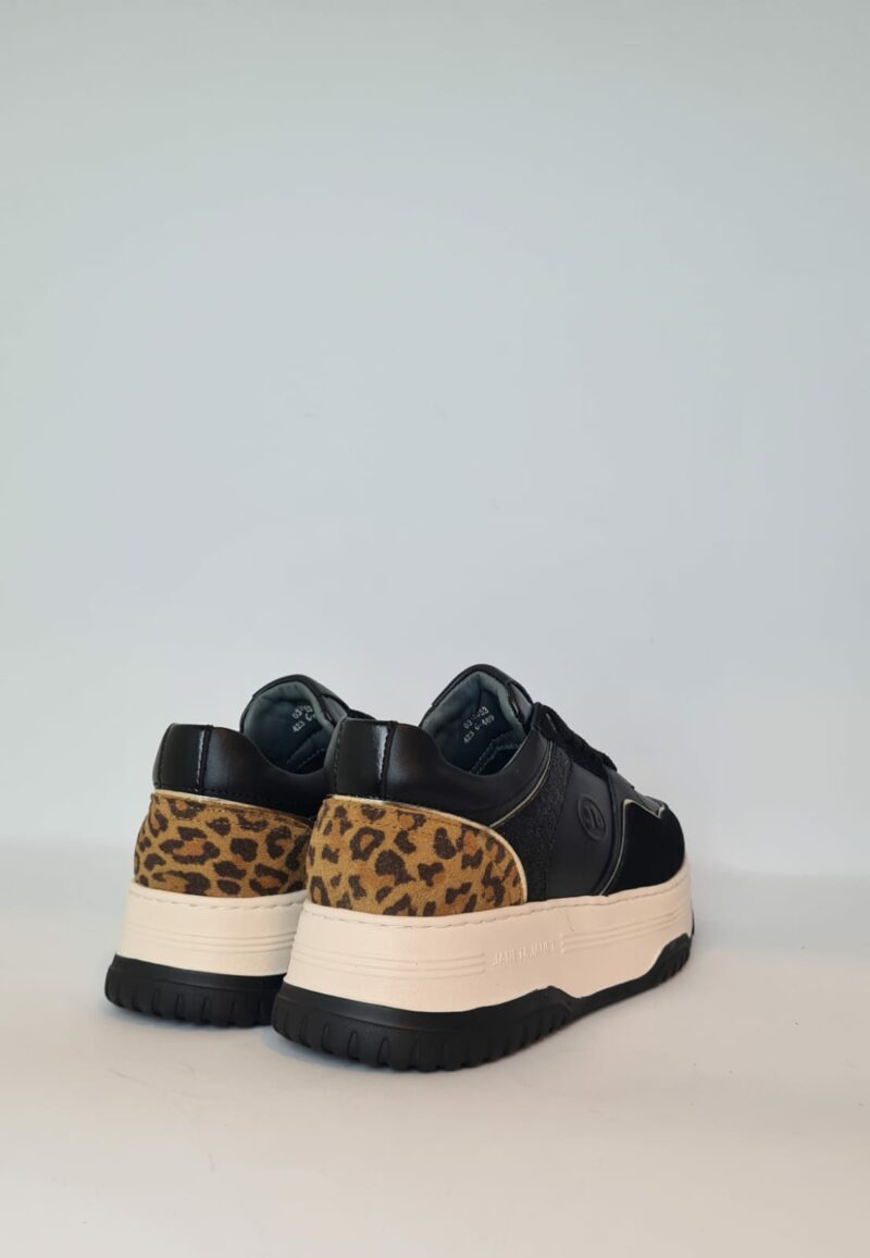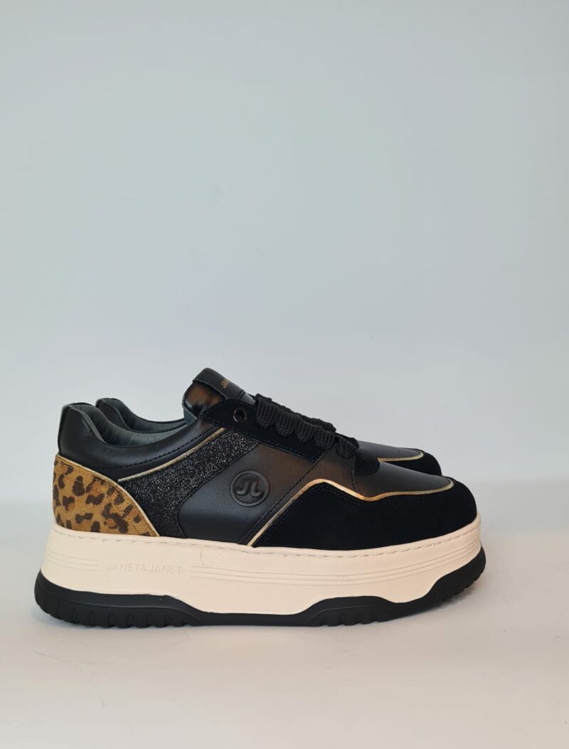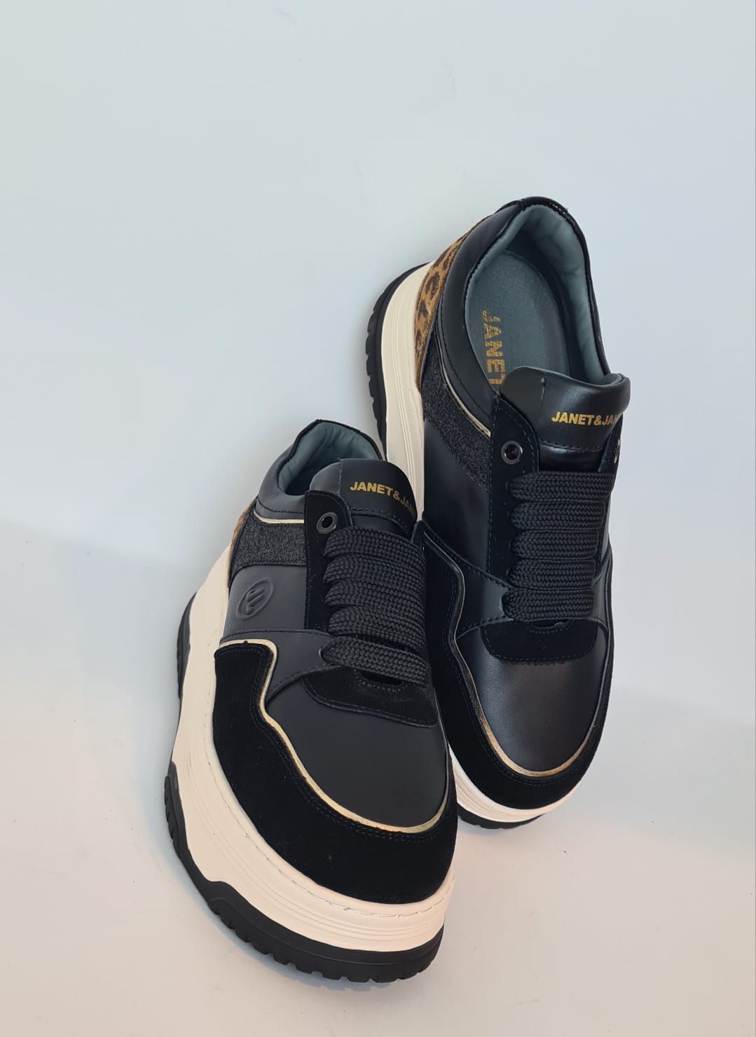Sneakers “Janet & Janet” nere con inserti in camoscio, glitterati e maculati.