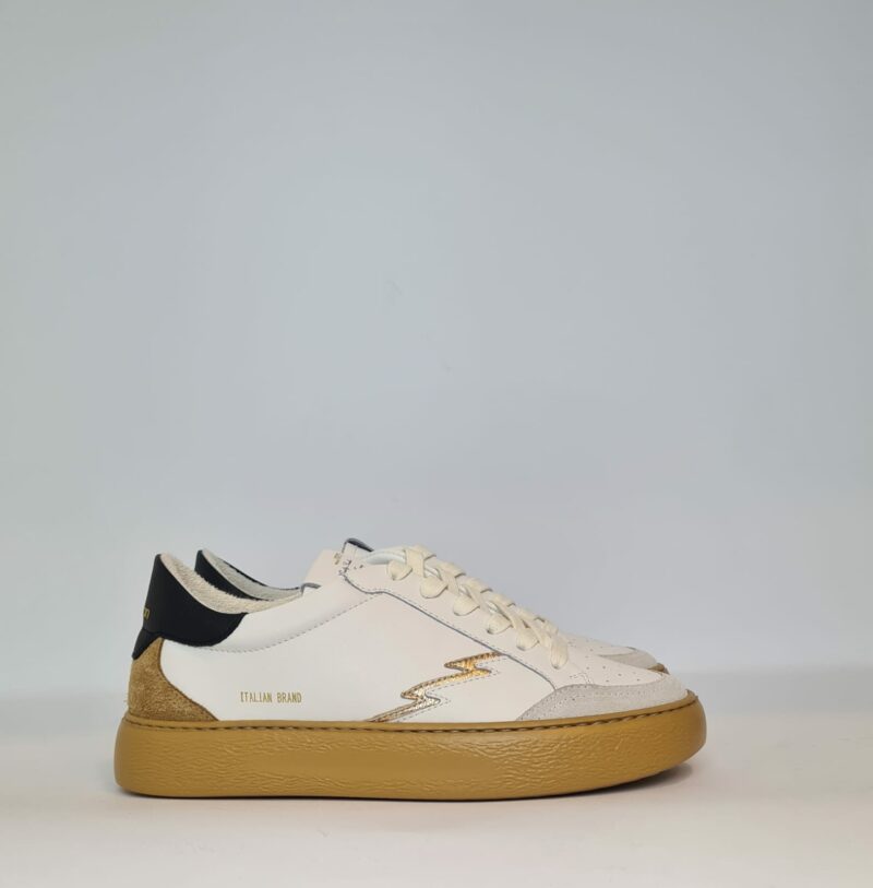 Sneakers in pelle caratterizzate da un dettaglio a forma di fulmine sul lato esterno della scarpa.