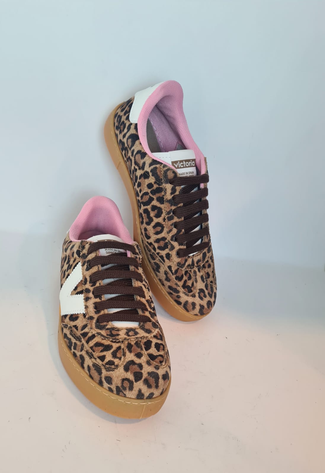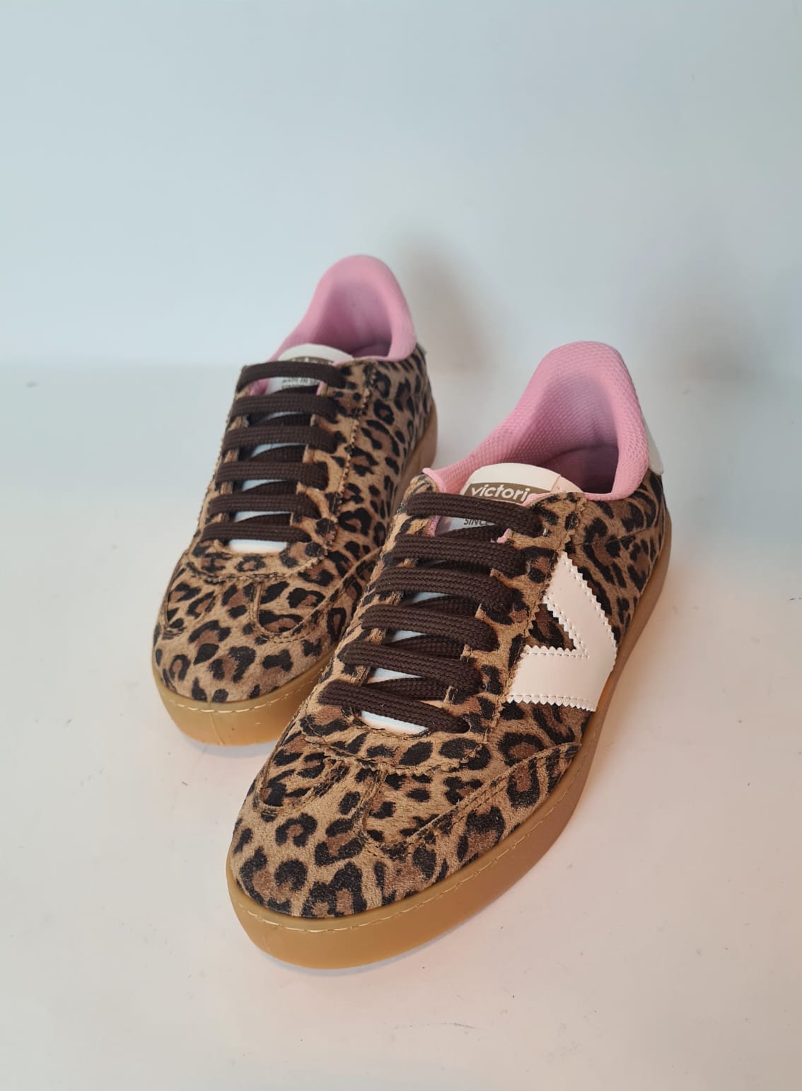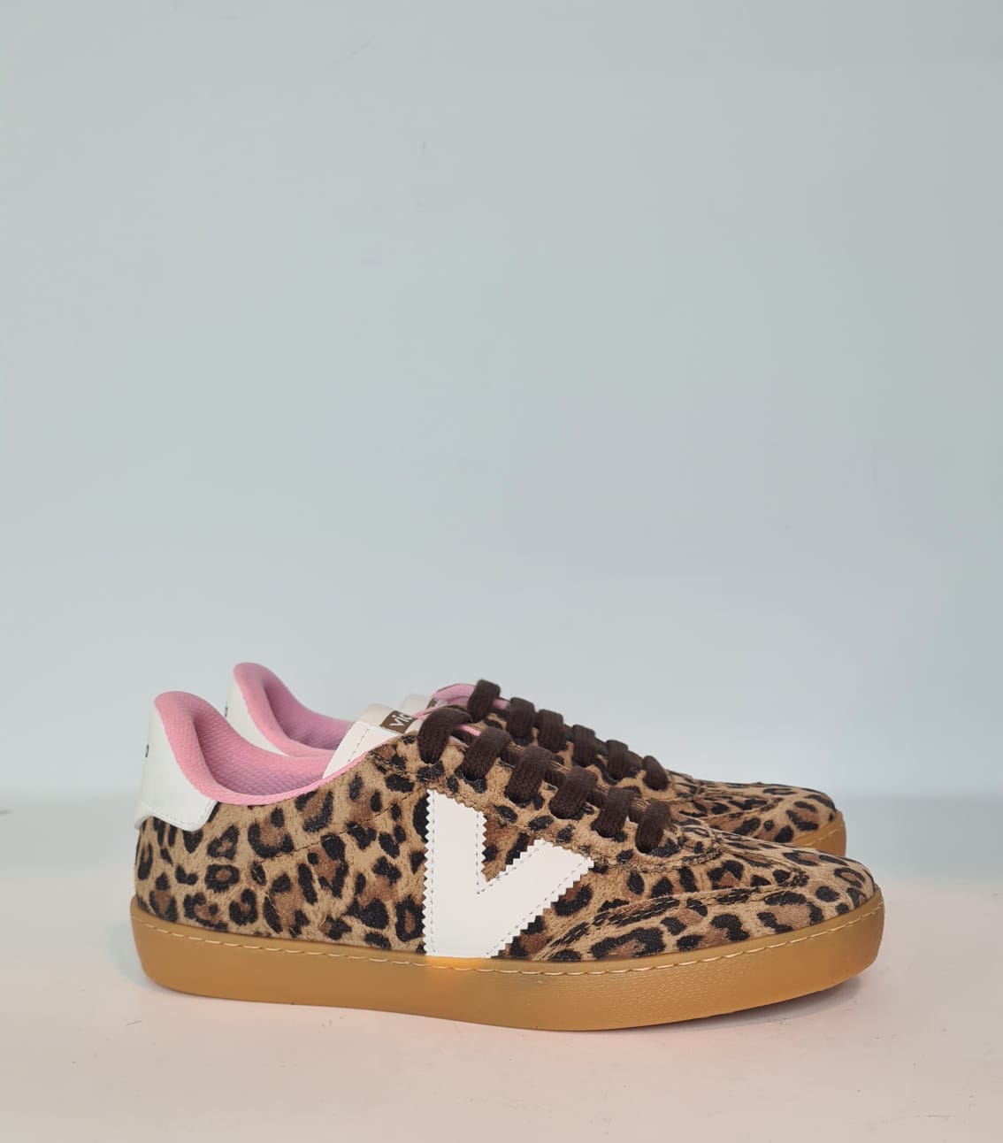 Sneakers effetto maculato con inserti in bianco e interni in rosa.