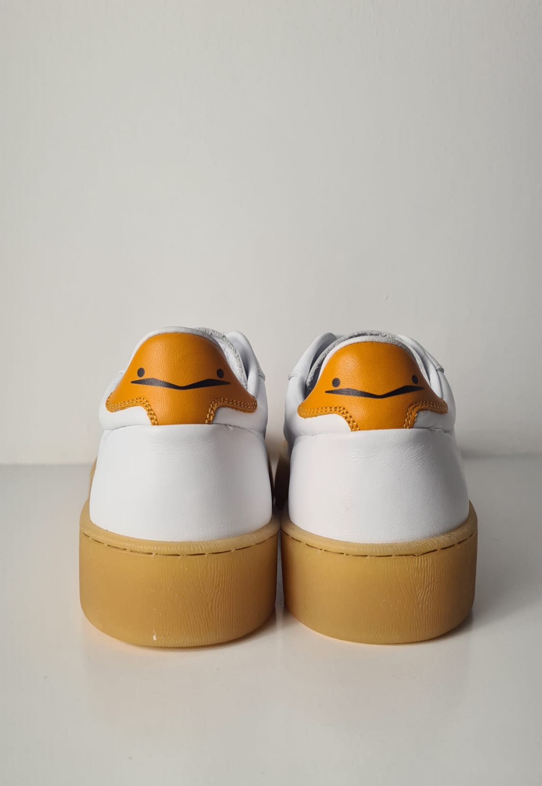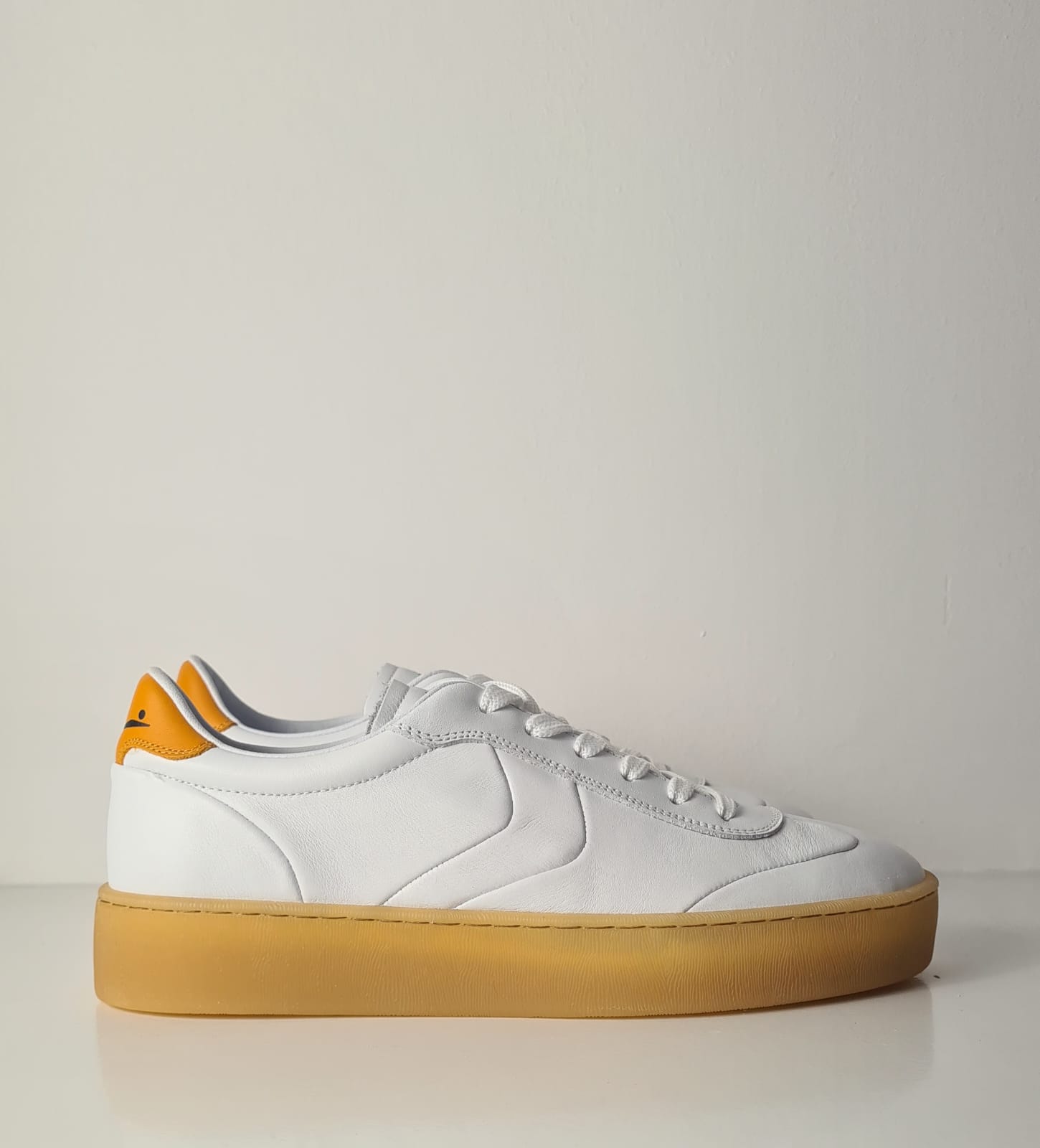 Sneakers “Voile Blanche” con tomaia in pelle monocolore e fondo in gomma con costruzione a cassetta.