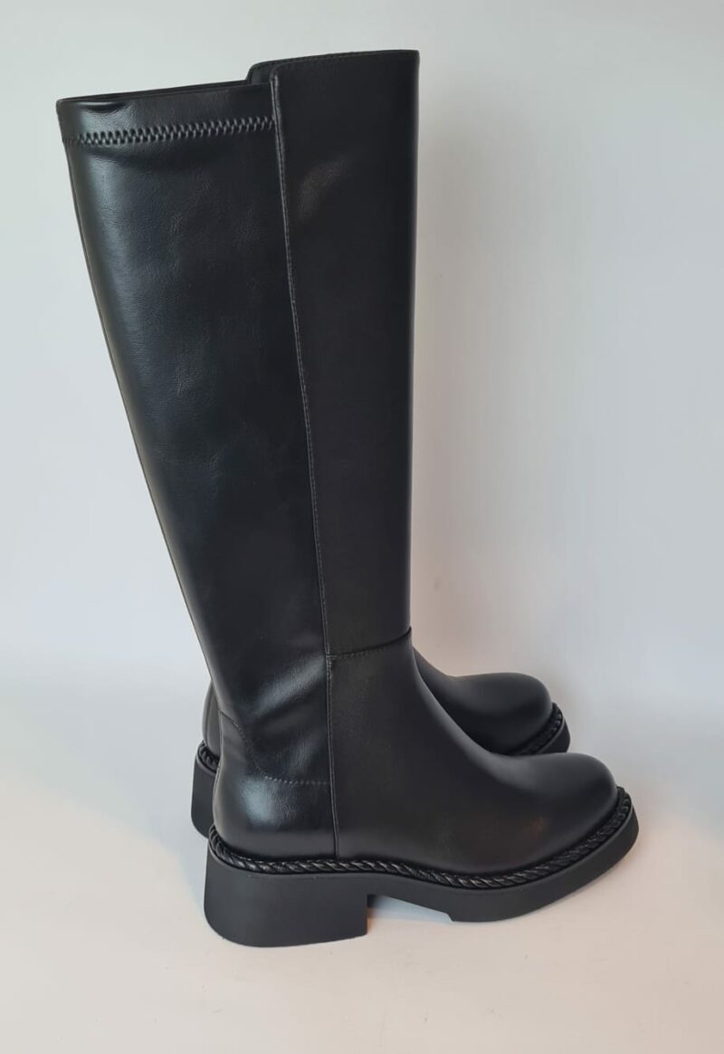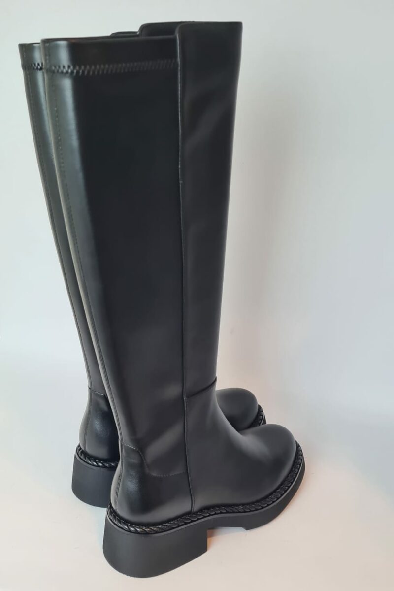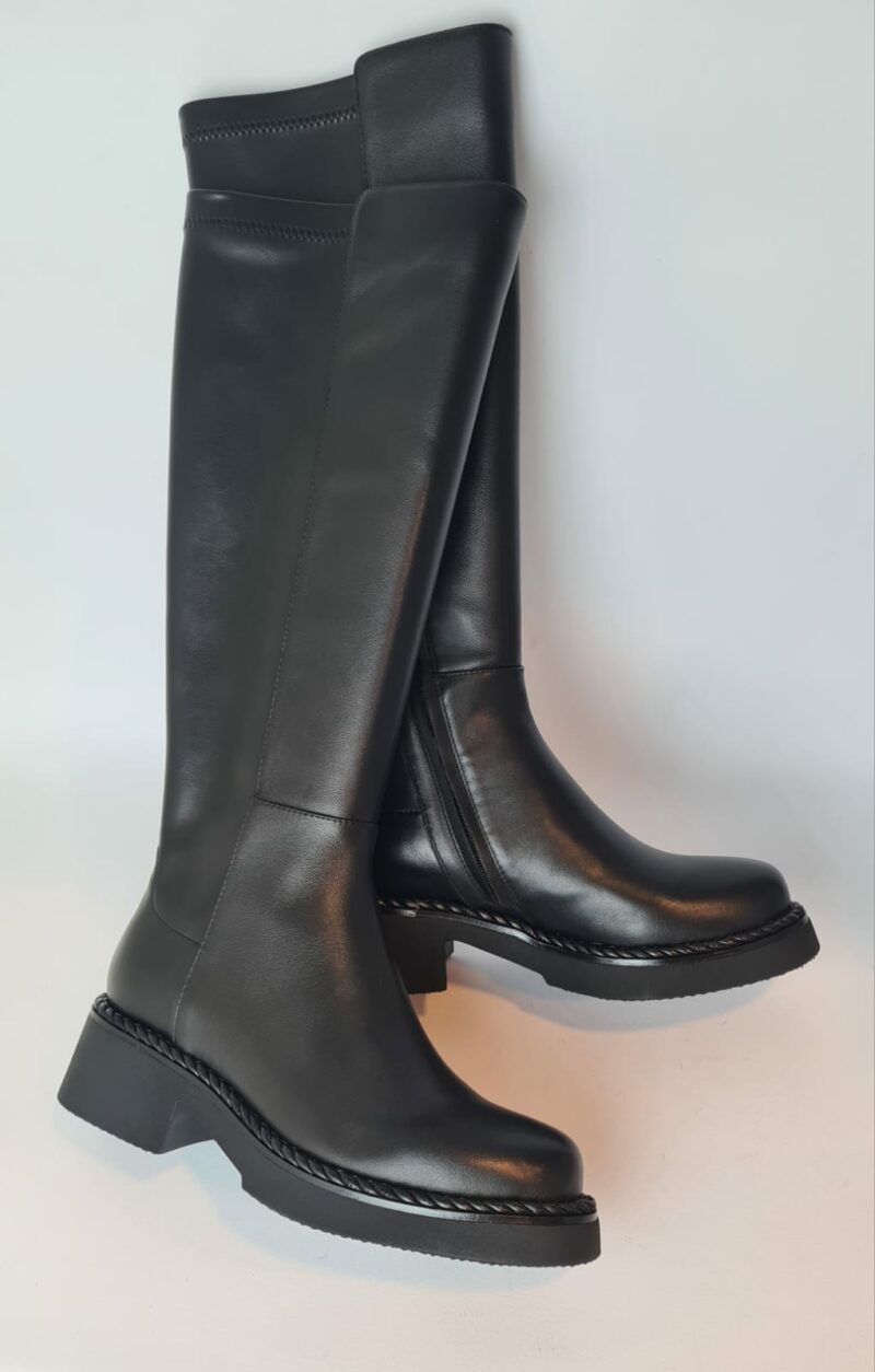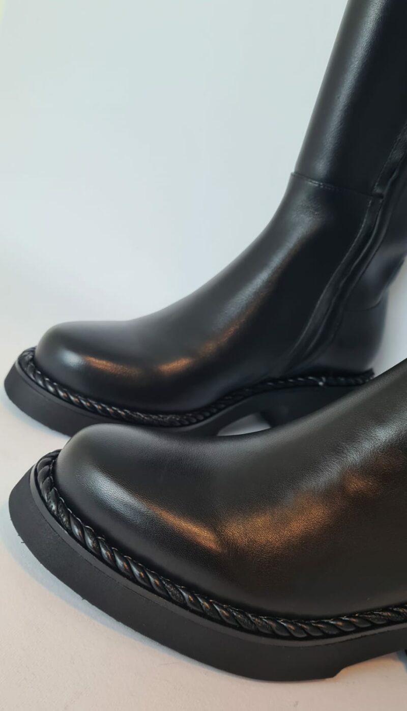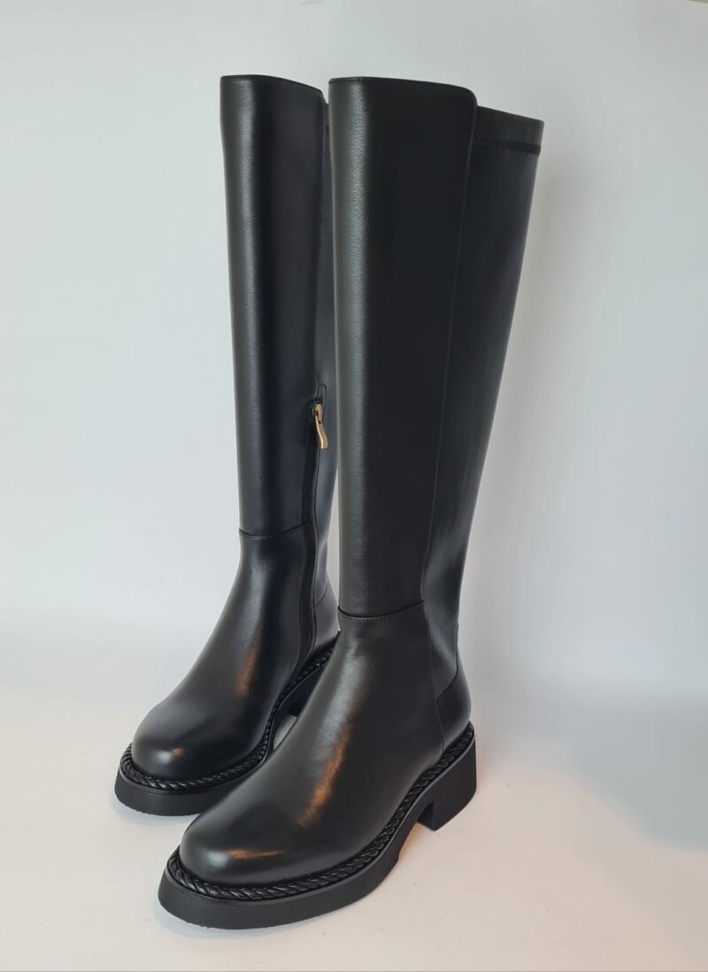 Stivale “Bruno Premi” alto, liscio, punta tonda e chiusura con zip nel lato interno della scarpa.