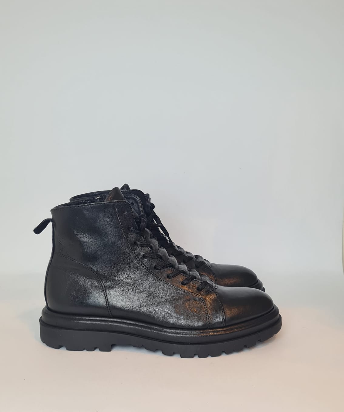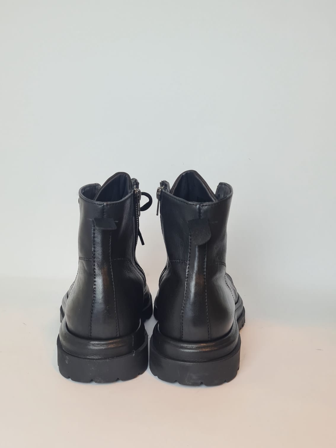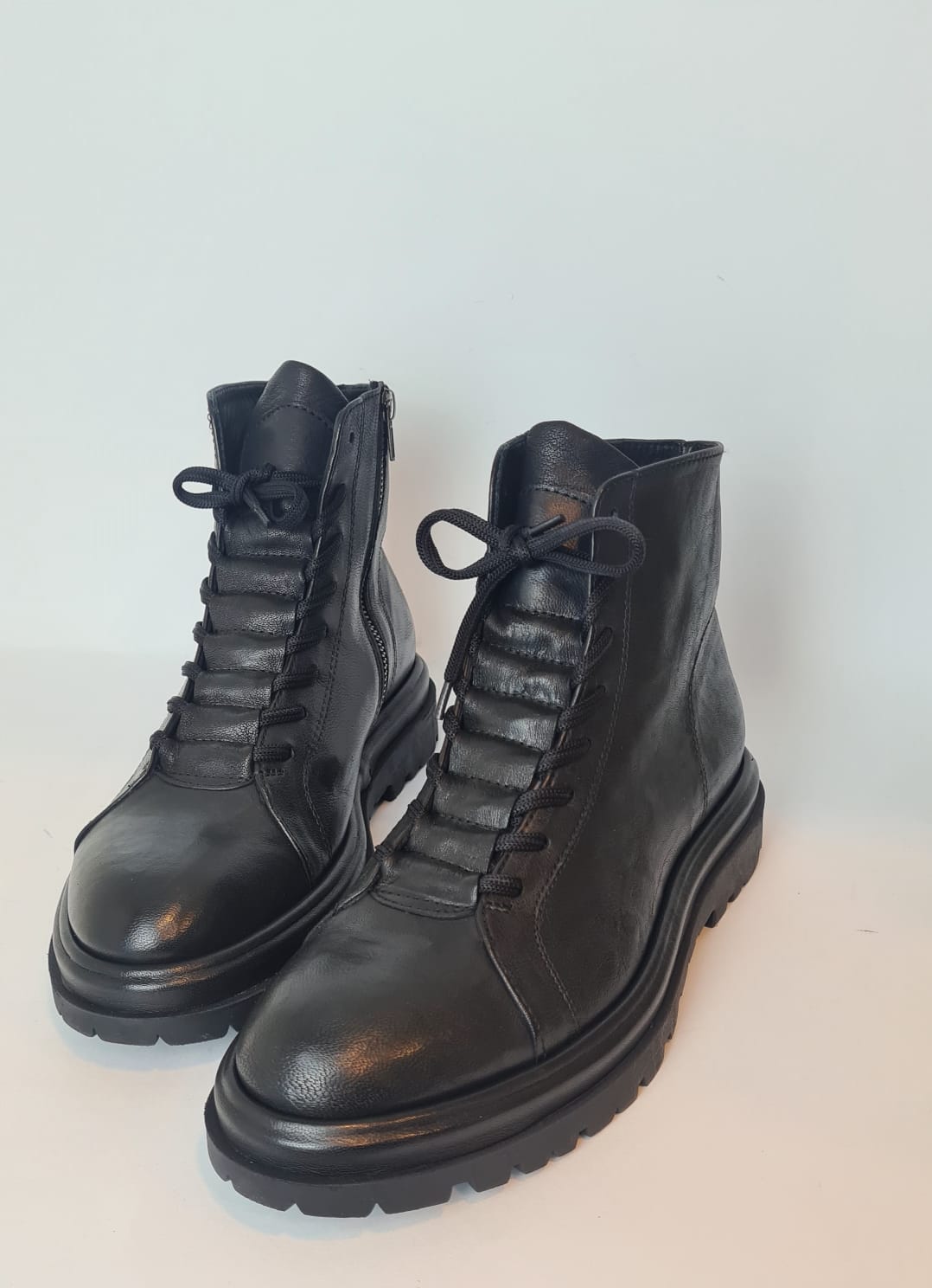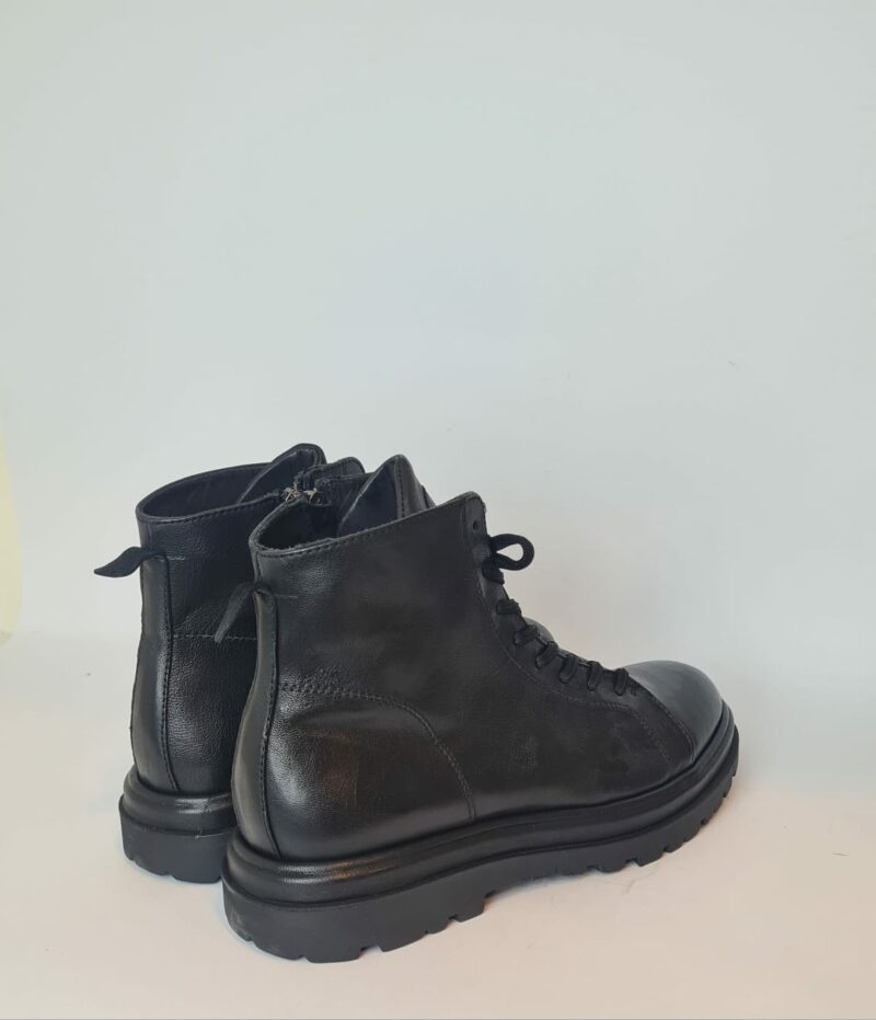 Stivaletto in pelle, stringato con zip laterale.
