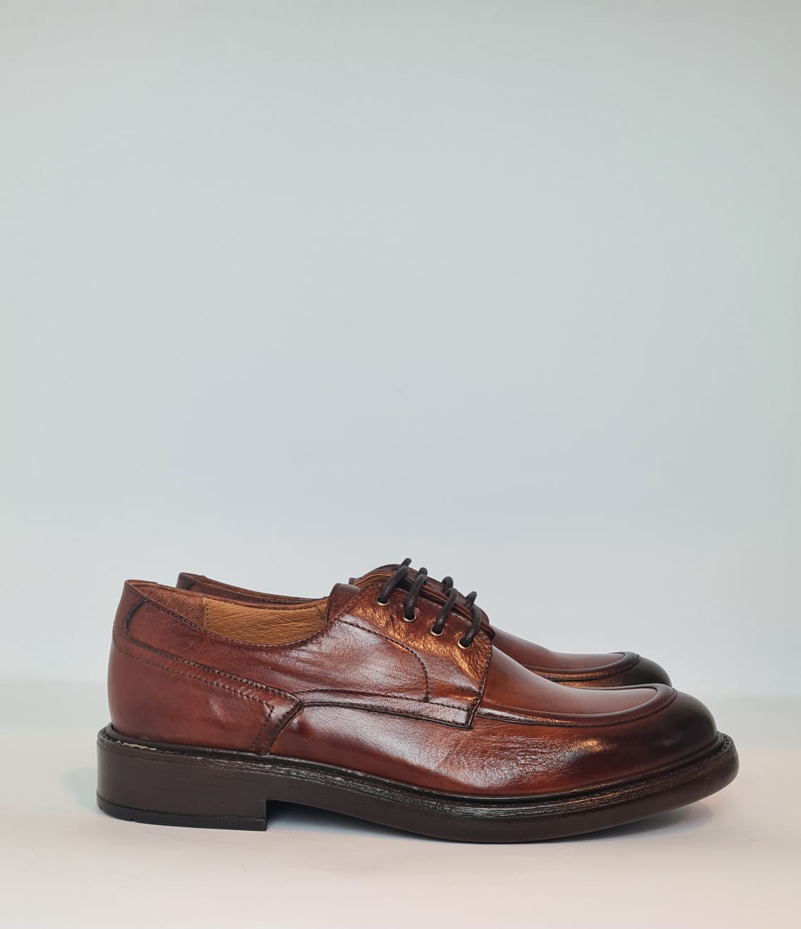 Stringata con tomaia in pelle, fodera in pelle, suola in gomma.