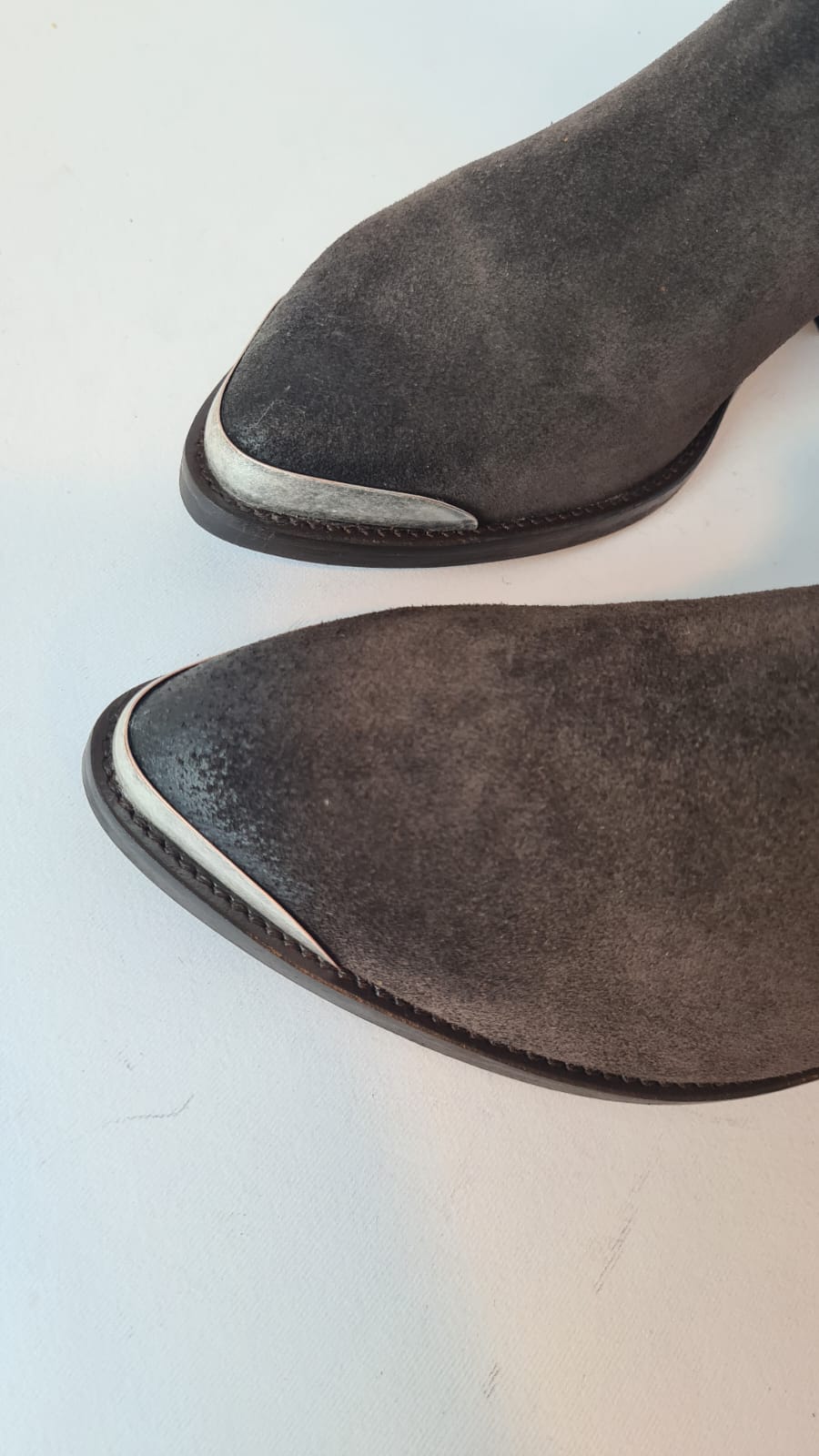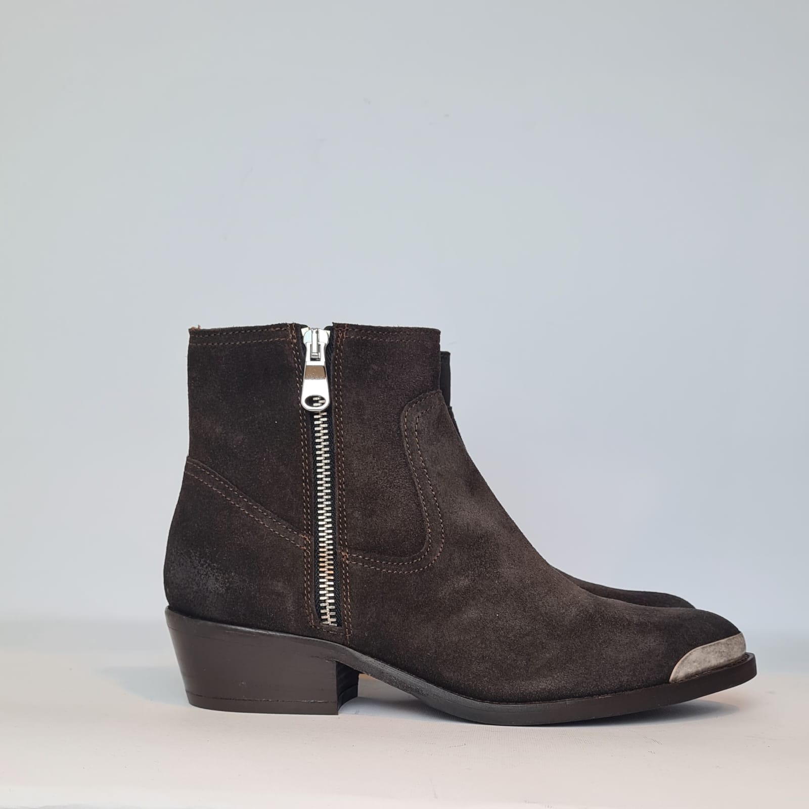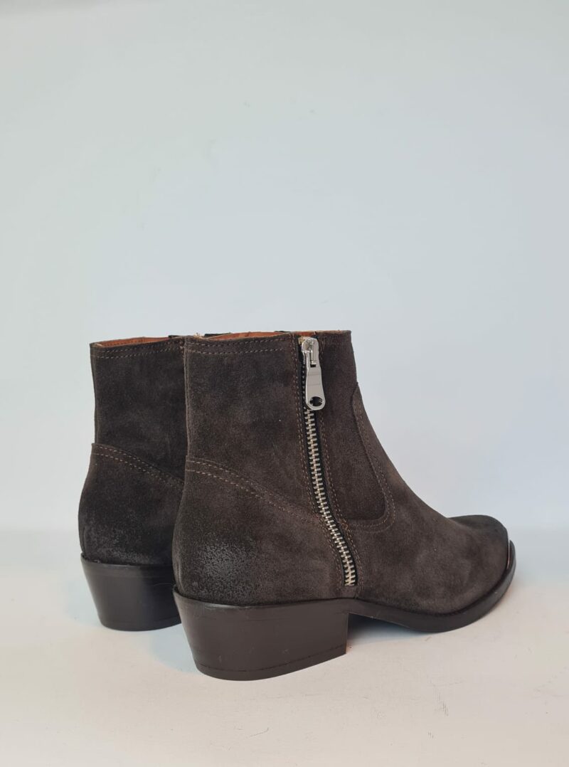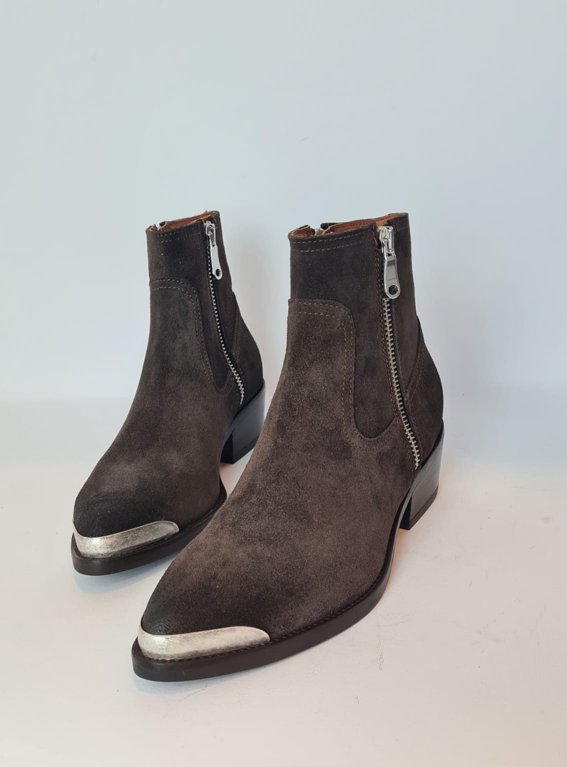 Stivaletto “Curiositè” scamosciato con punta a contrasto e zip laterale.