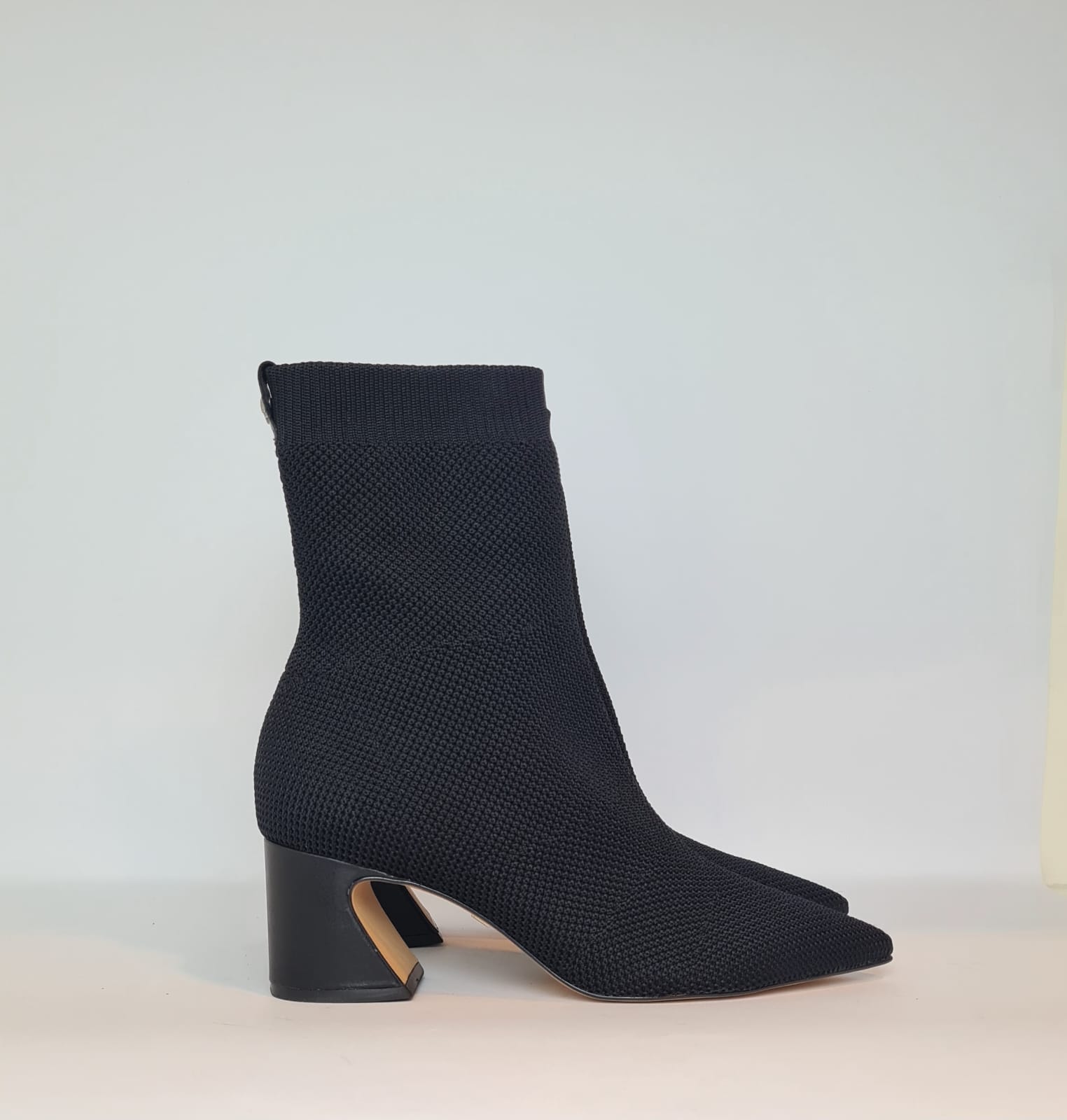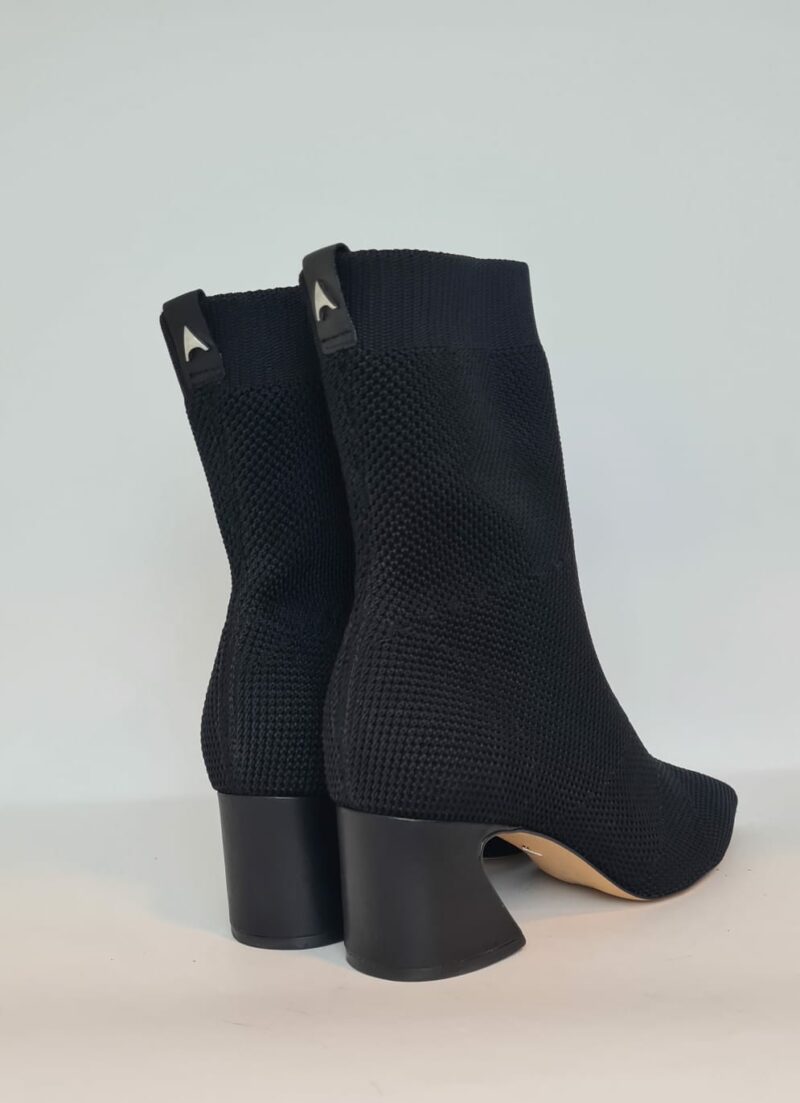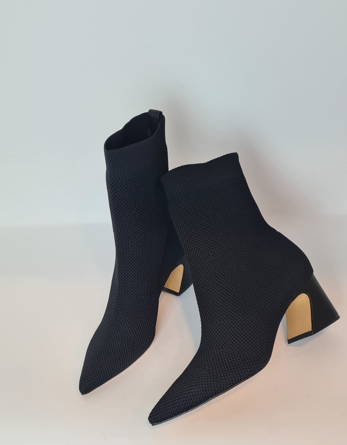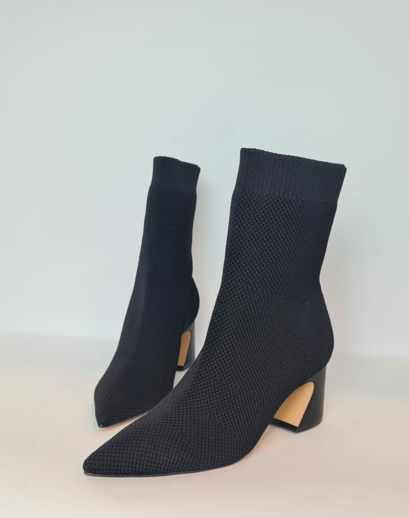 Tronchetti elasticizzati a punta, tacco largo che permette più stabilità e garantisce comodità.