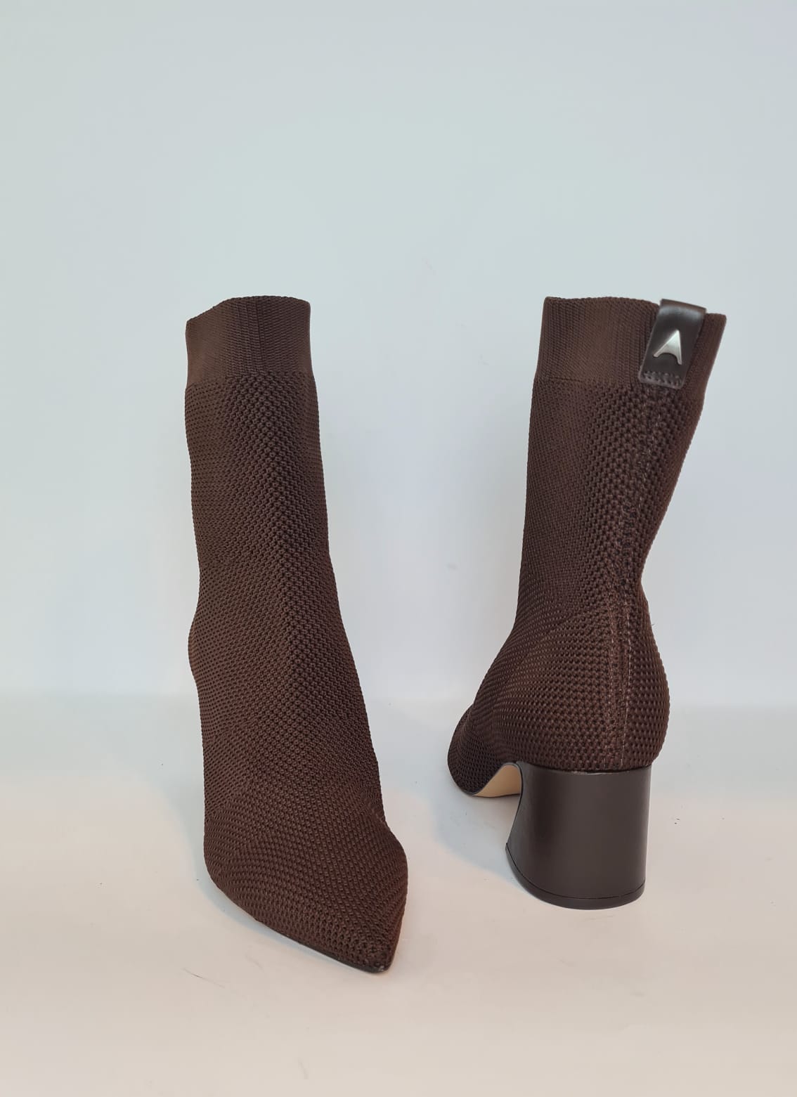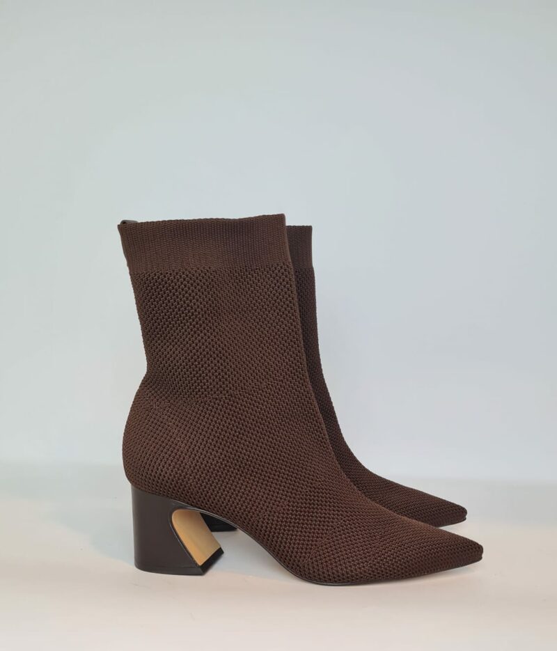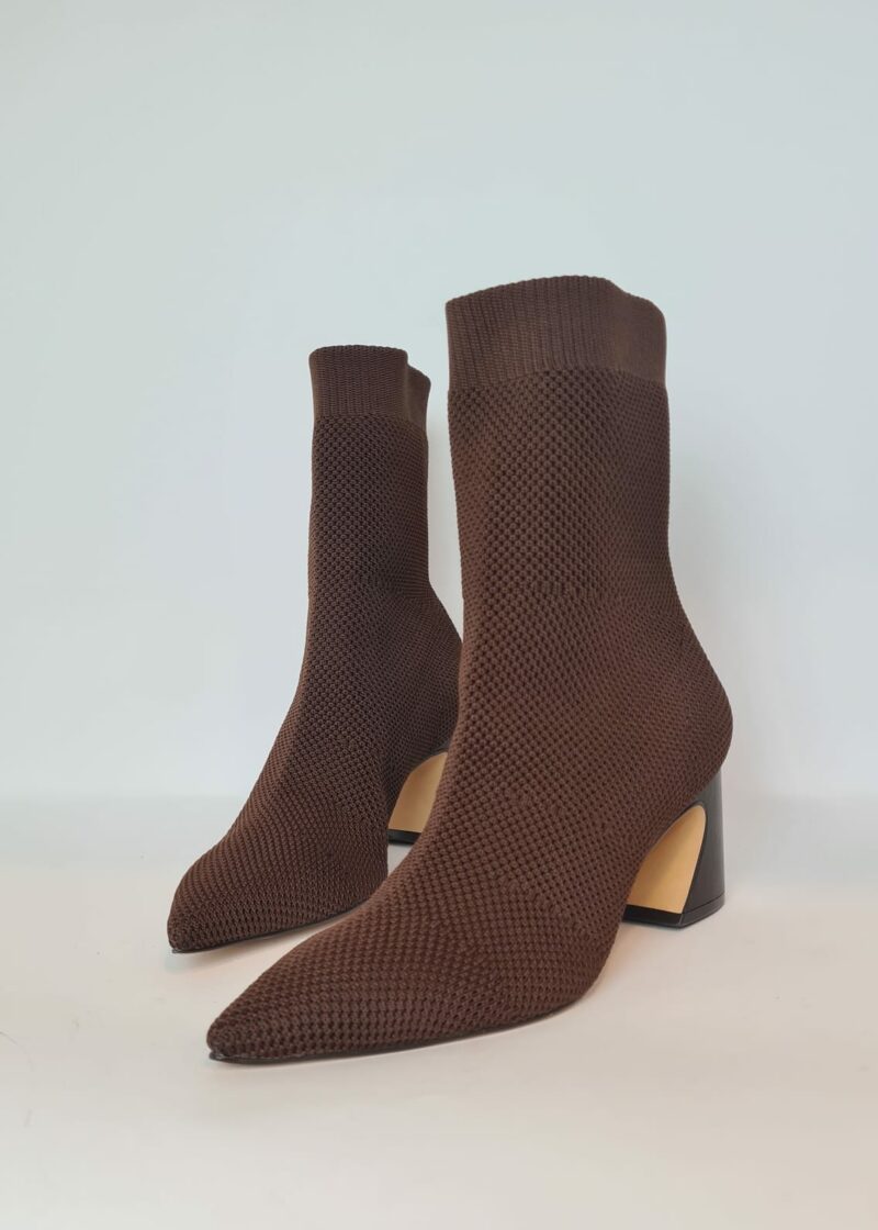 Tronchetti elasticizzati a punta, tacco largo che permette più stabilità e garantisce comodità.
